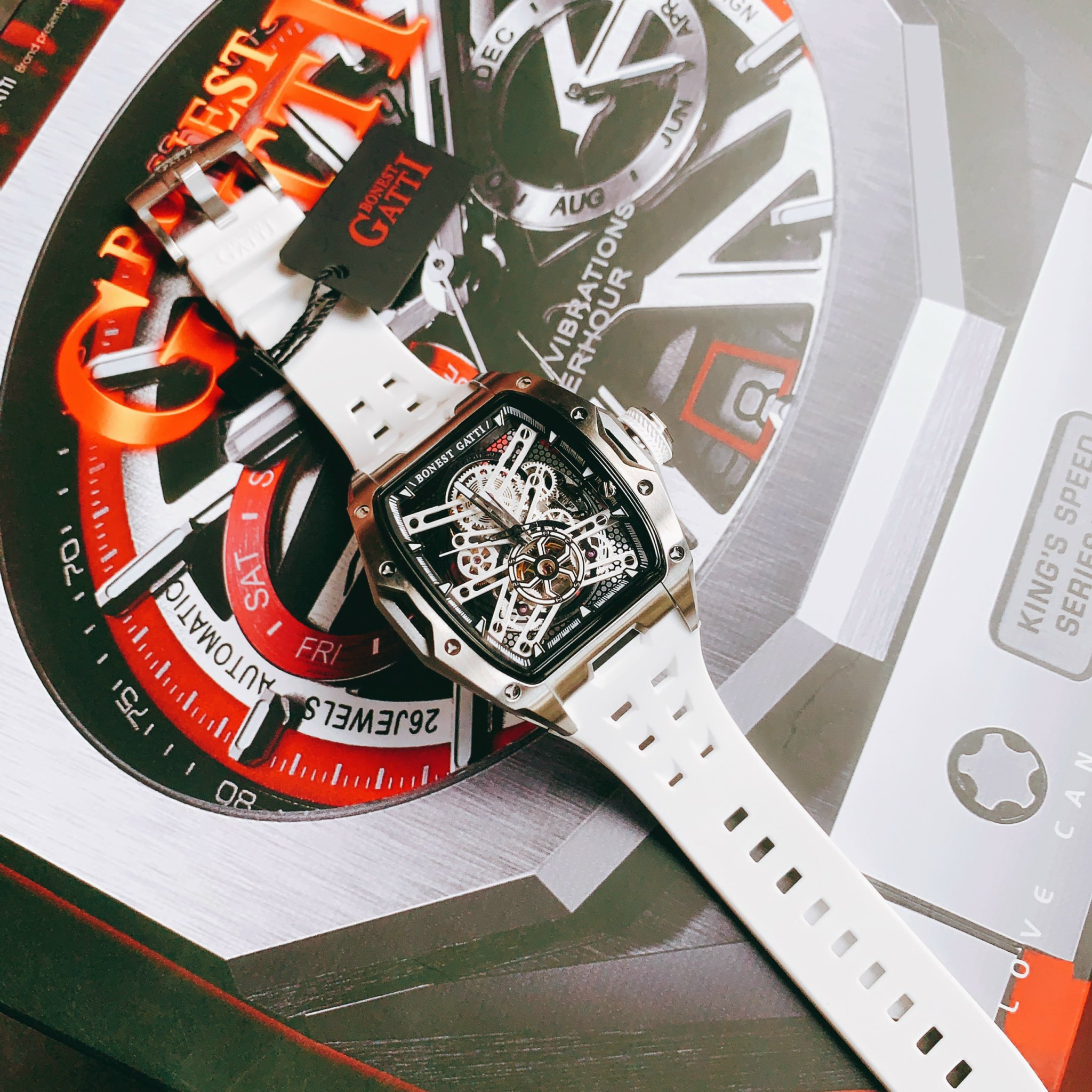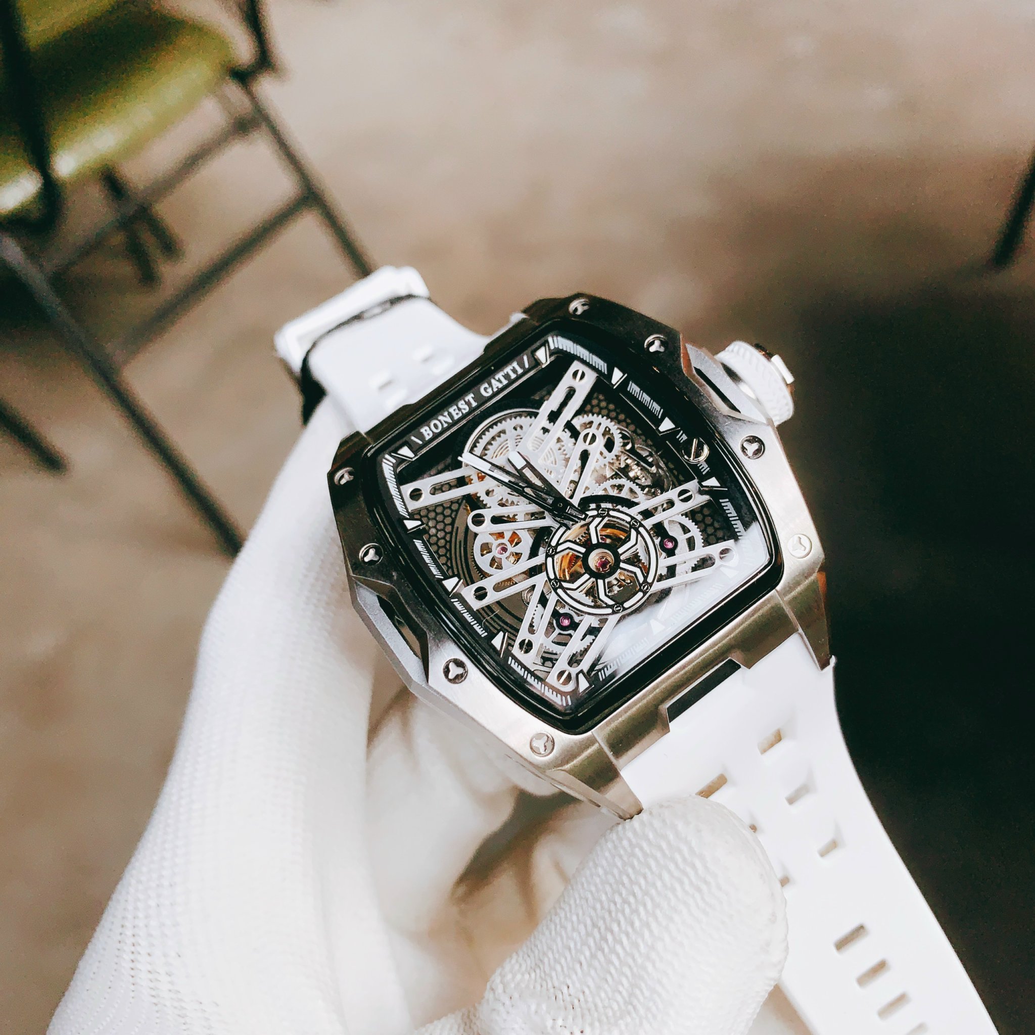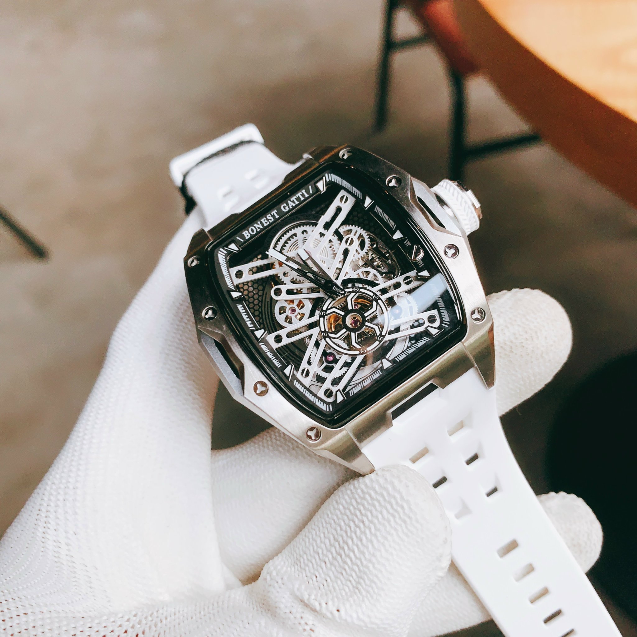 Đồng hồ Bonest Gatti chính hãng BG5502-A2 nam dây cao su trắng 45mm
