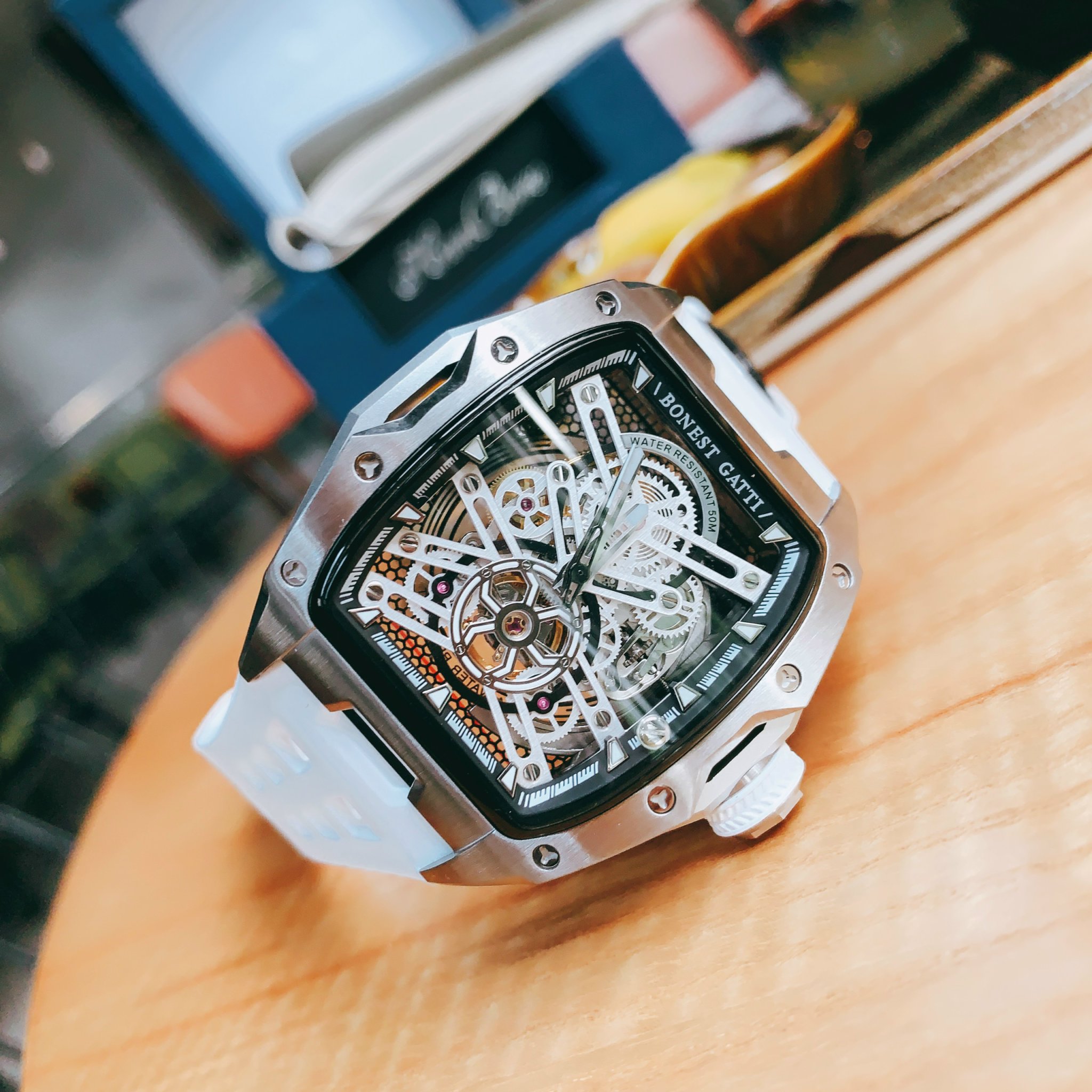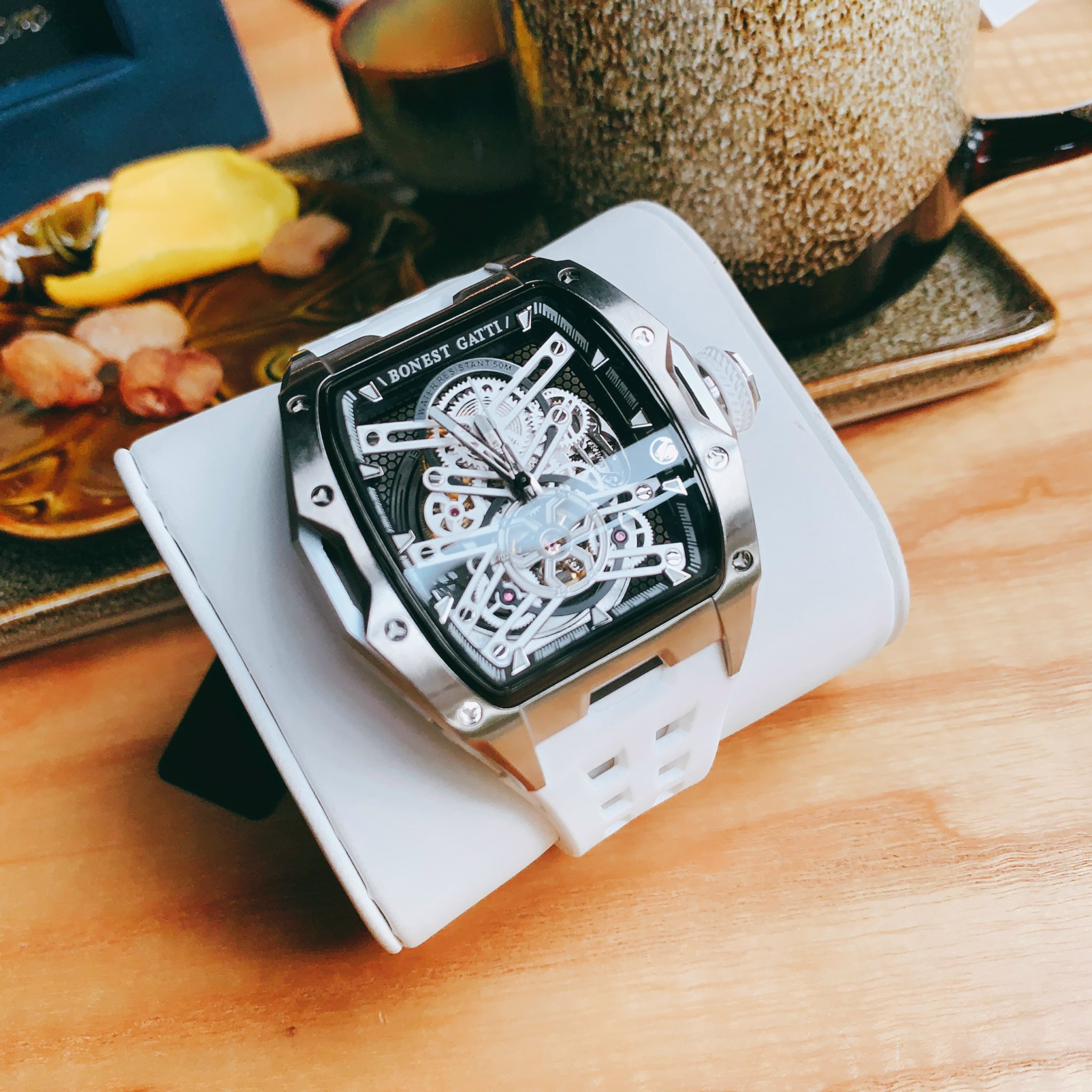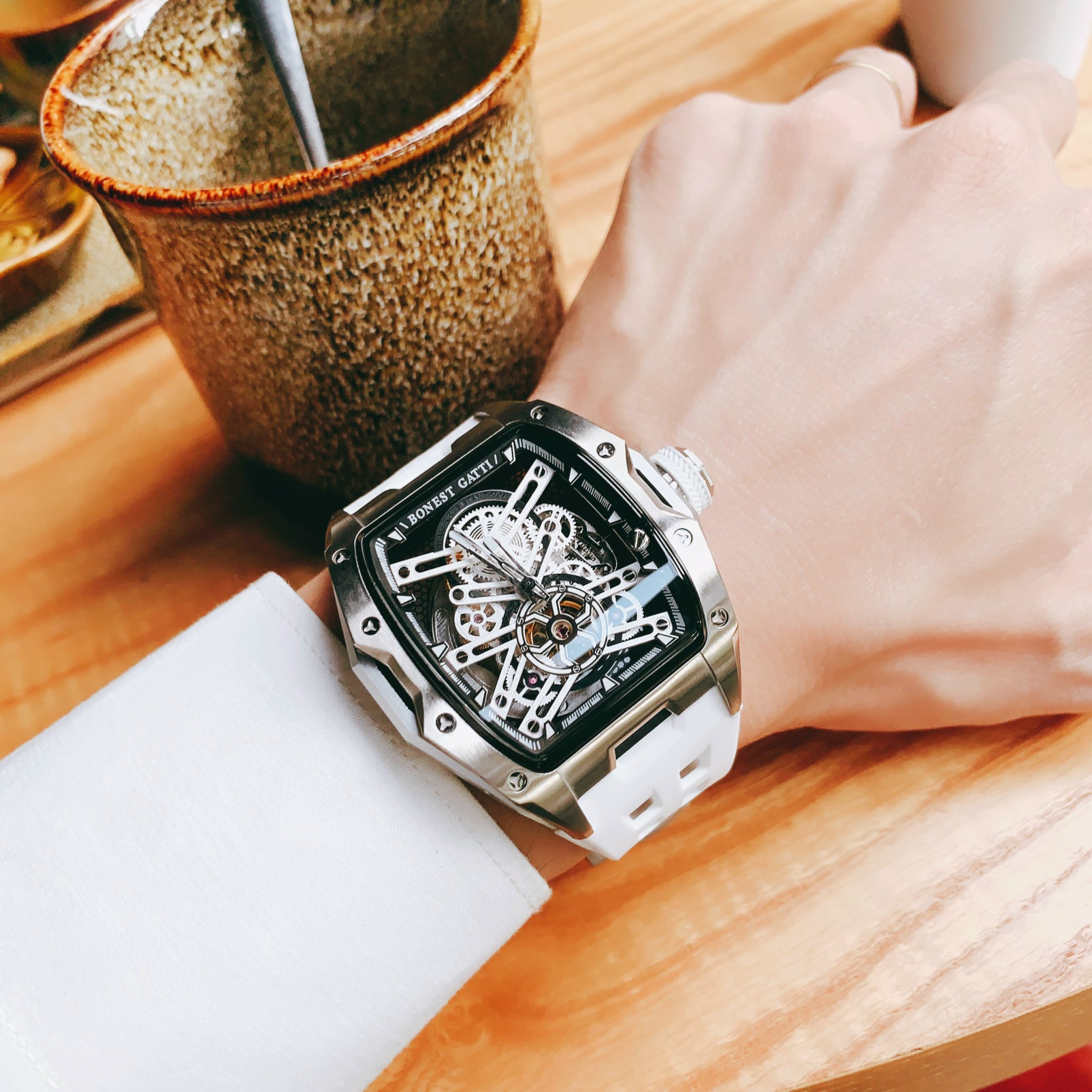 Đồng hồ Bonest Gatti chính hãng BG5502-A2 nam dây cao su trắng 45mm