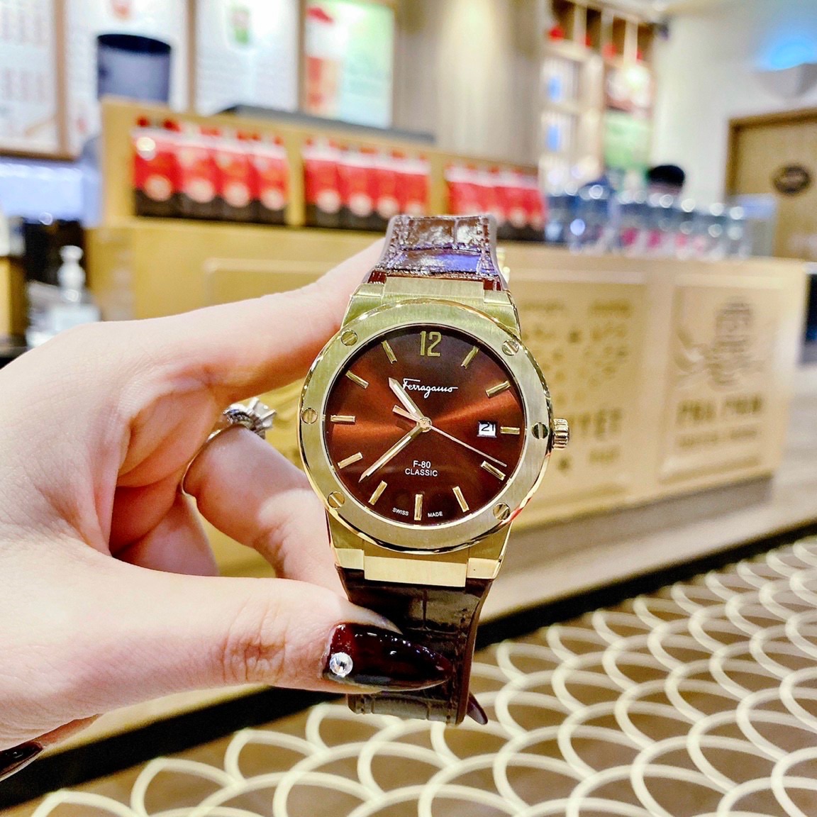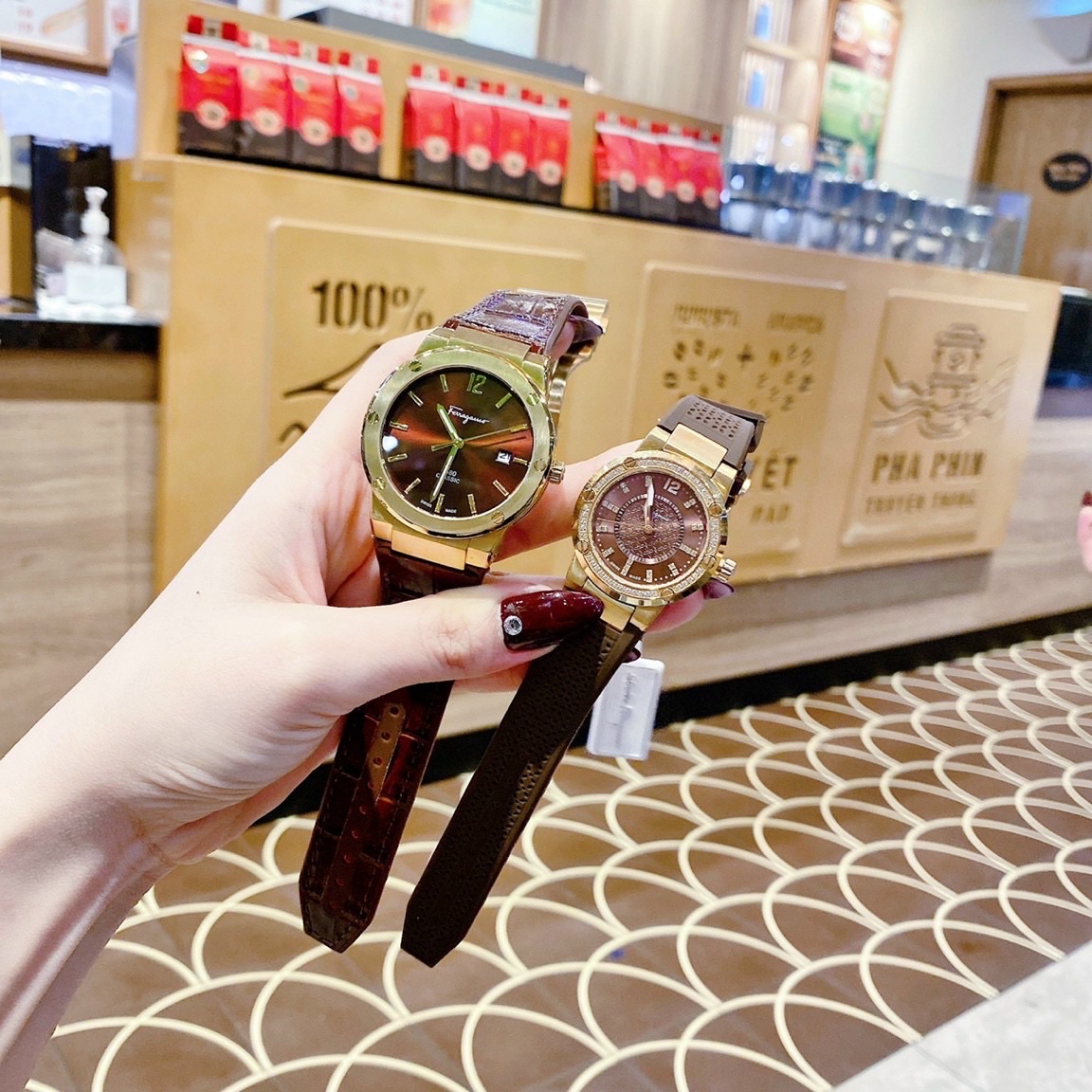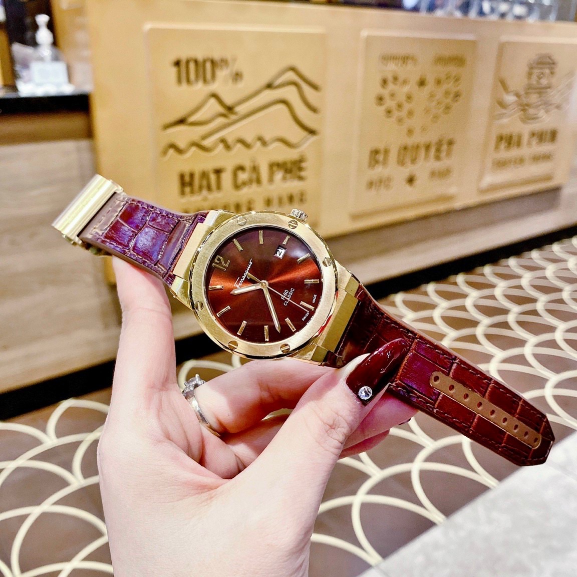 Đồng hồ cặp Salvatore Ferragamo F80 Classic màu nâu Like Auth 33/40mm
