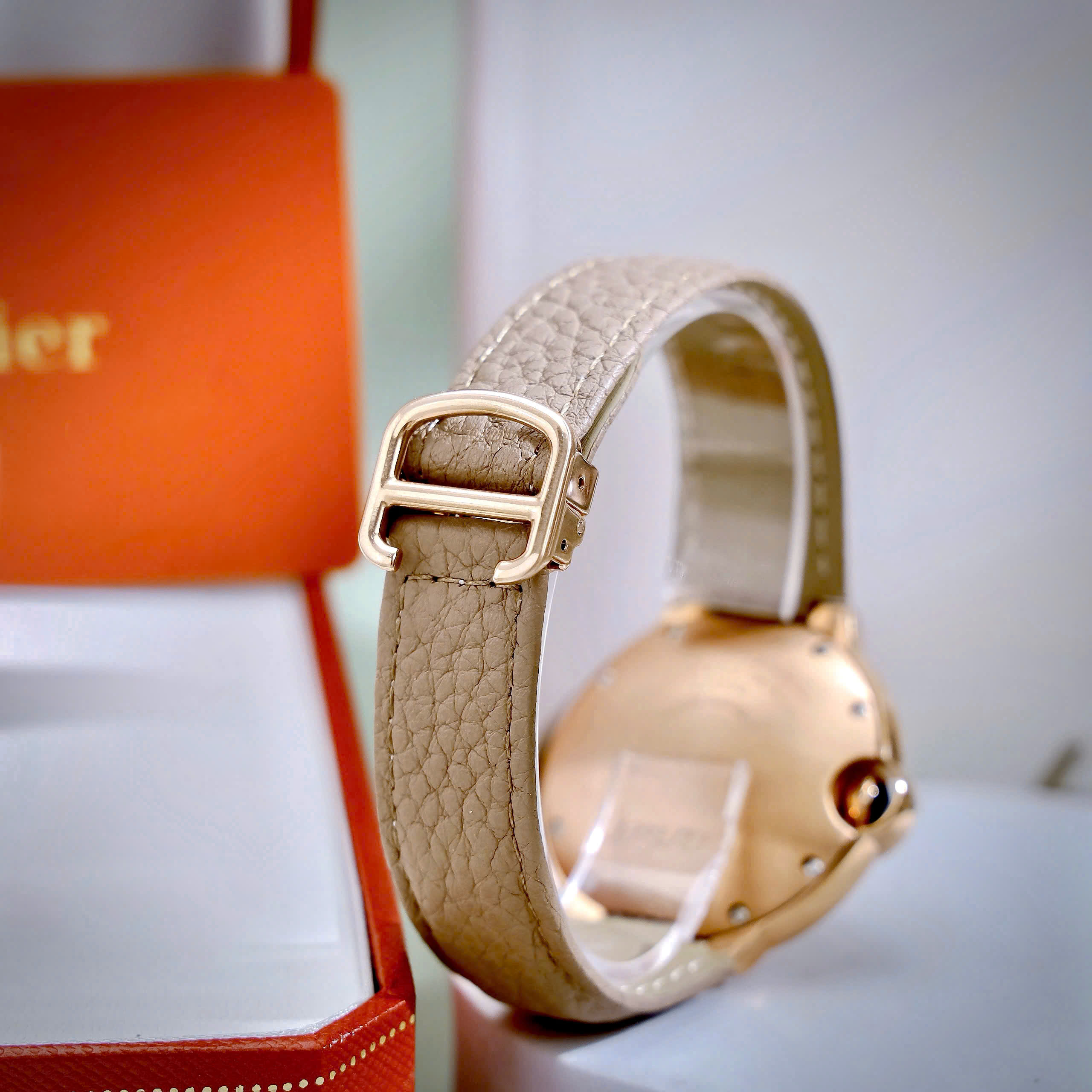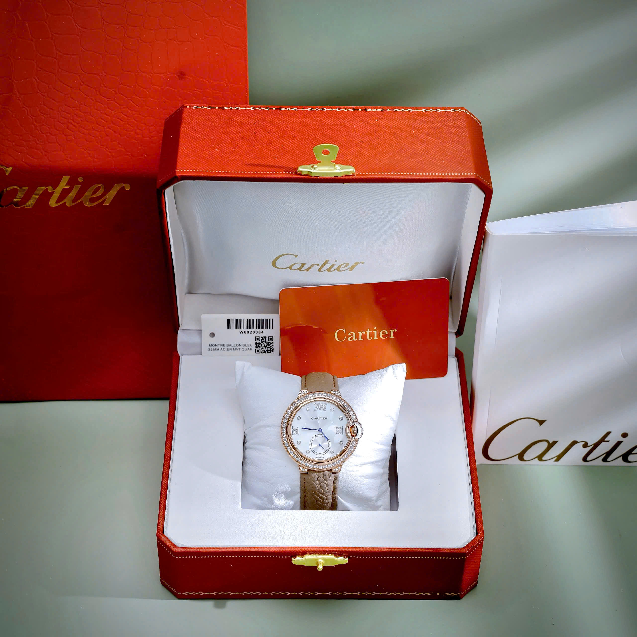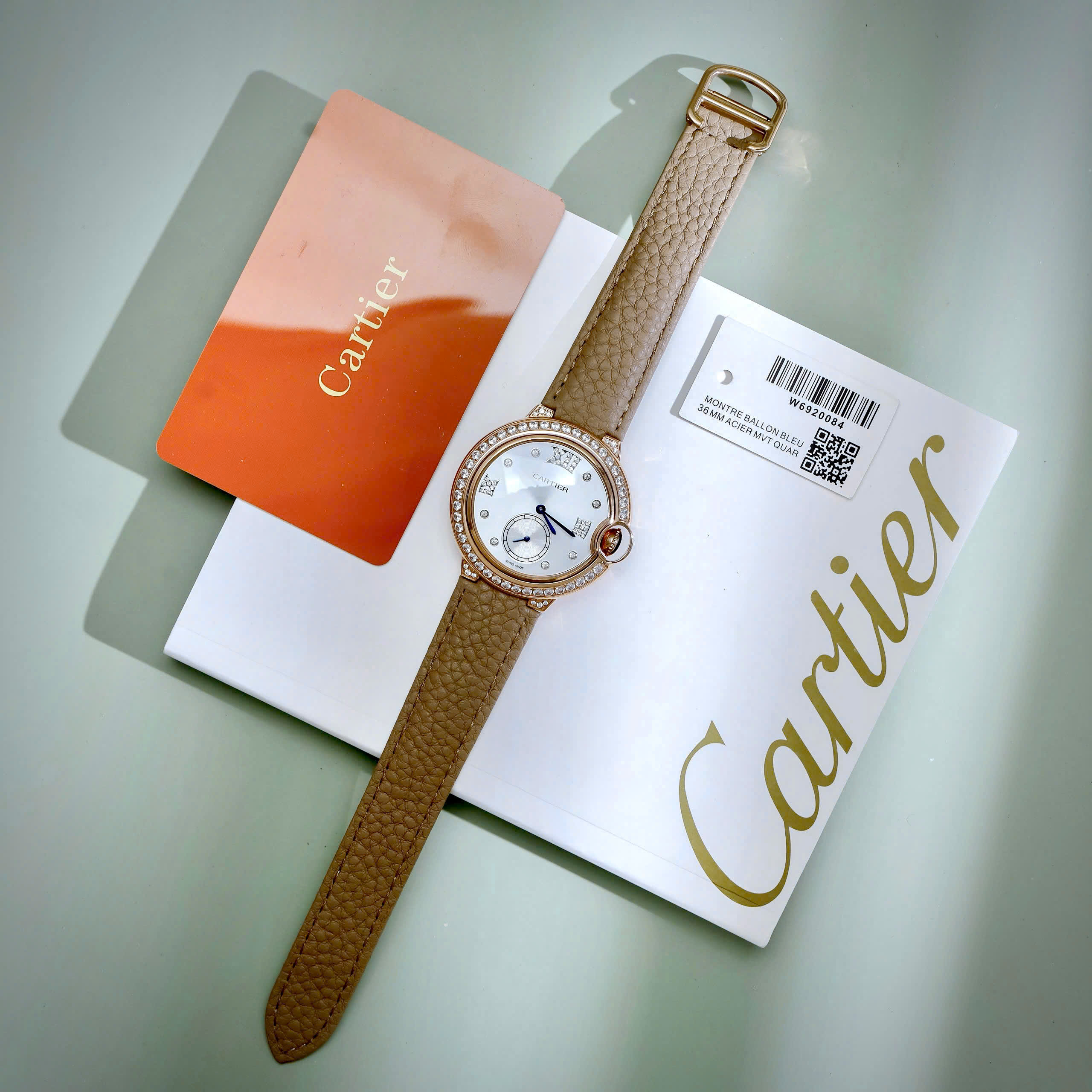 Đặt mua Đồng hồ Cartier Ballon Bleu đính đá mặt xà cừ dây da like auth 36mm