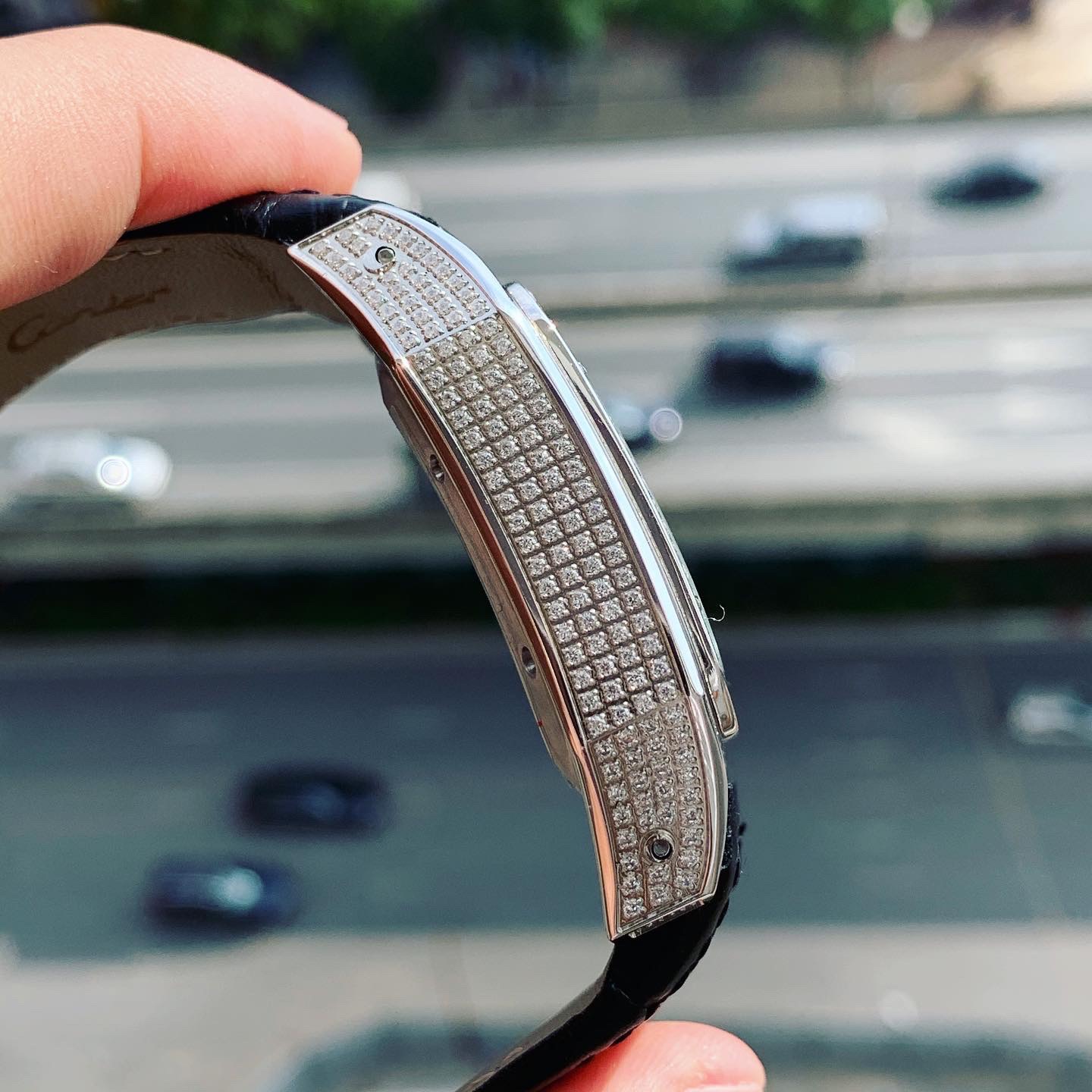 - Viền đồng hồ Cartier nam đính đá sáng lấp lánh sang chảnh