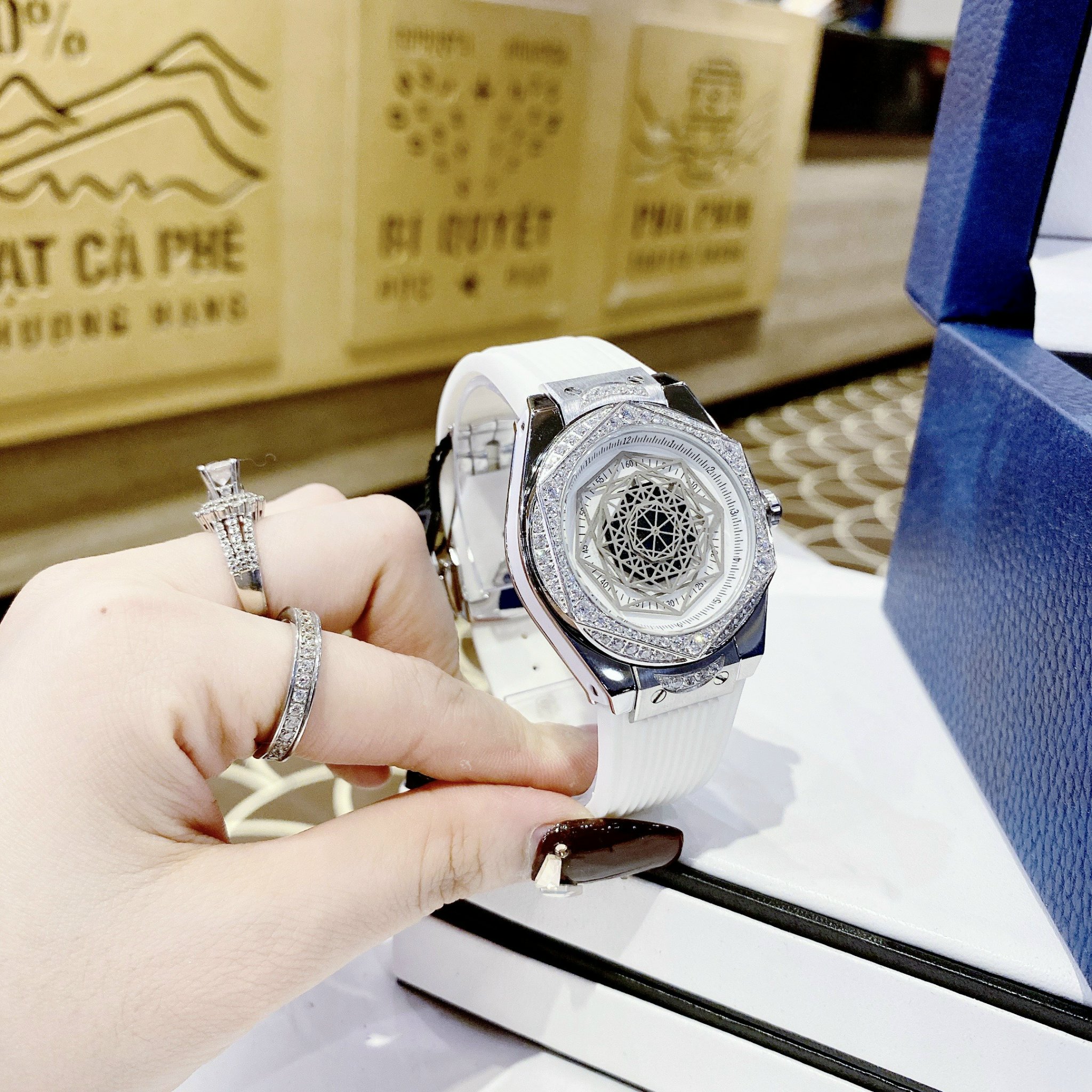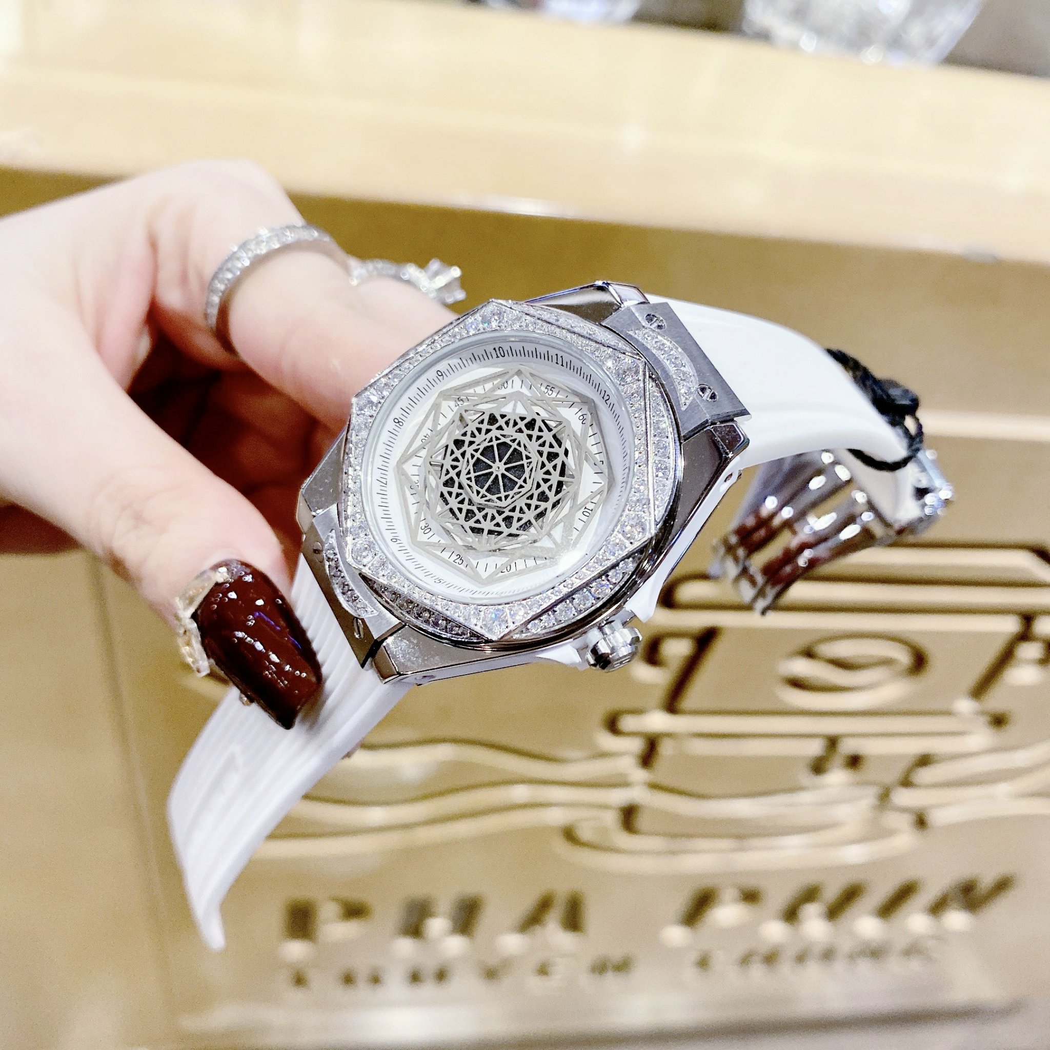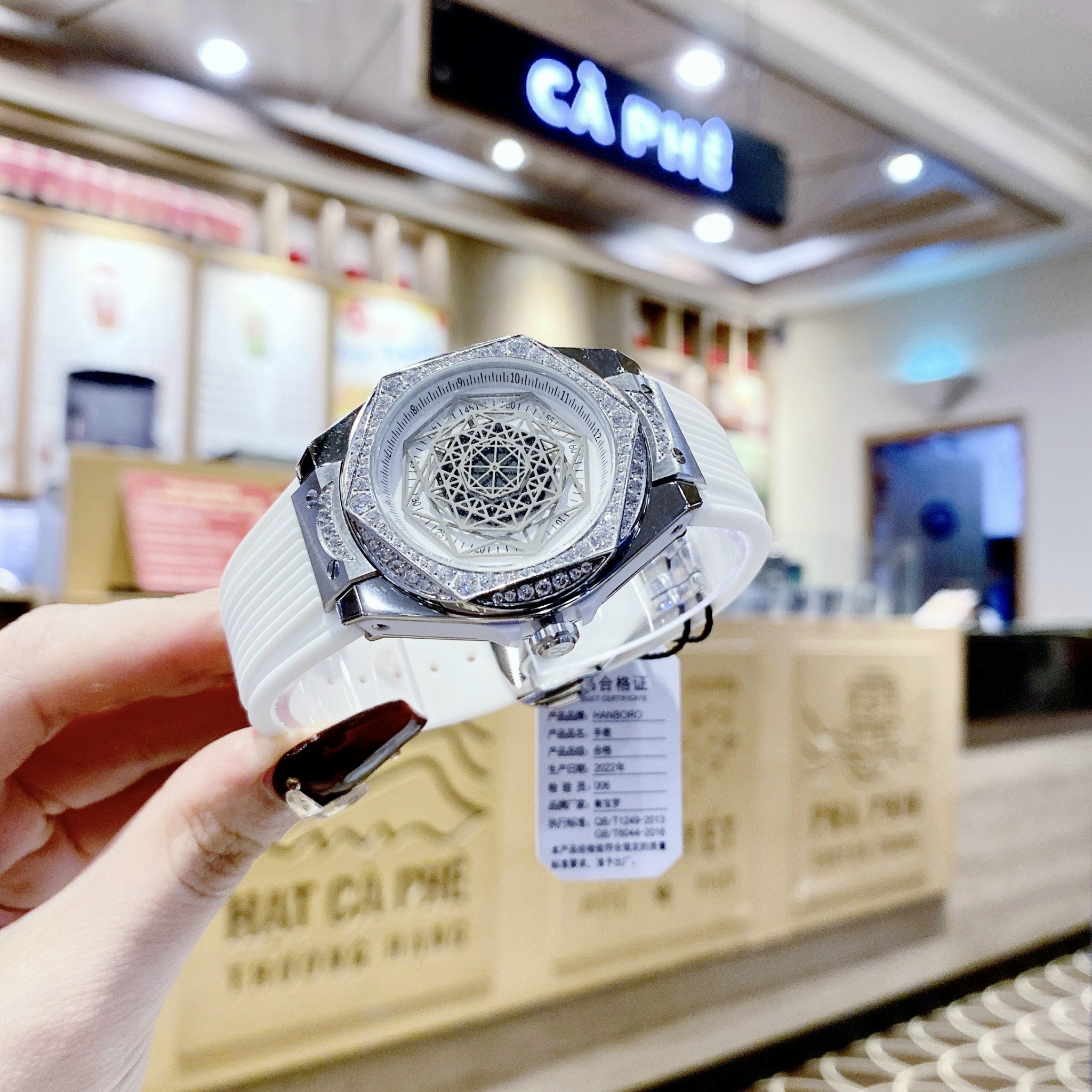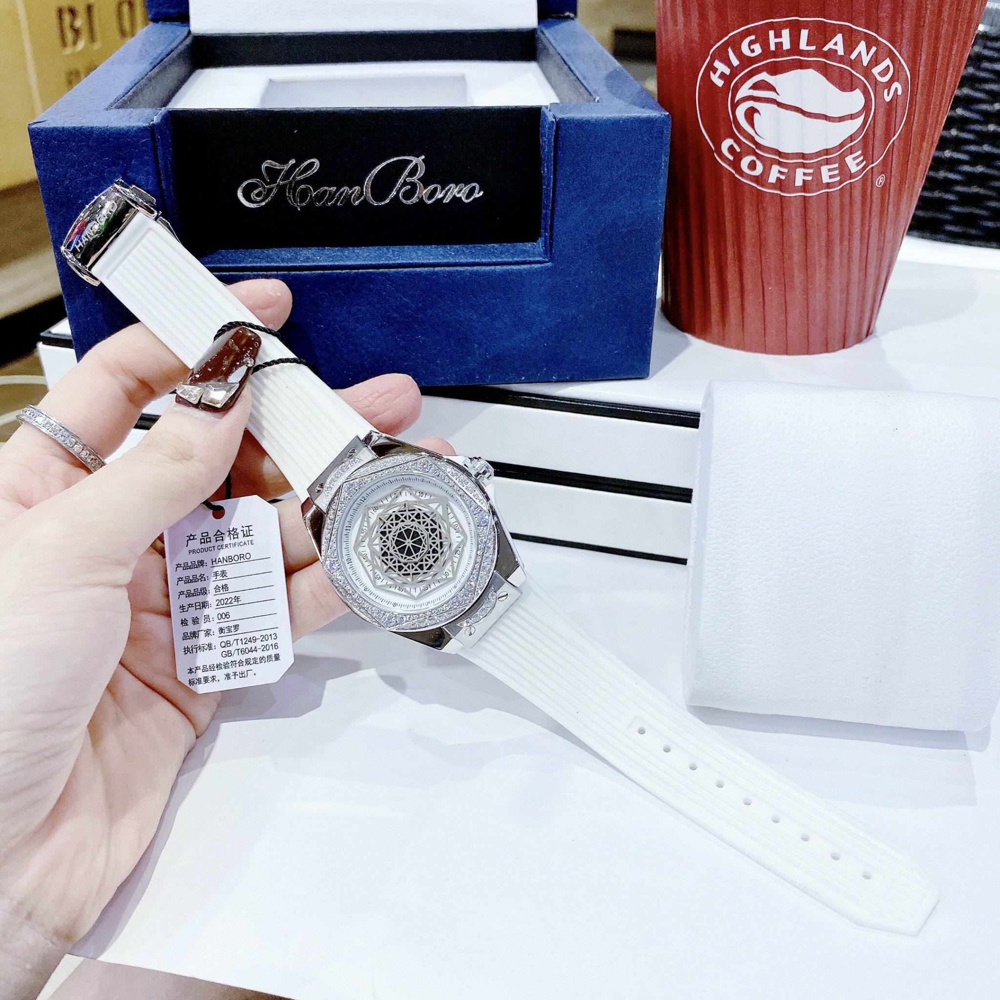 Đồng hồ chính hãng Hanboro nữ màu trắng đính đá