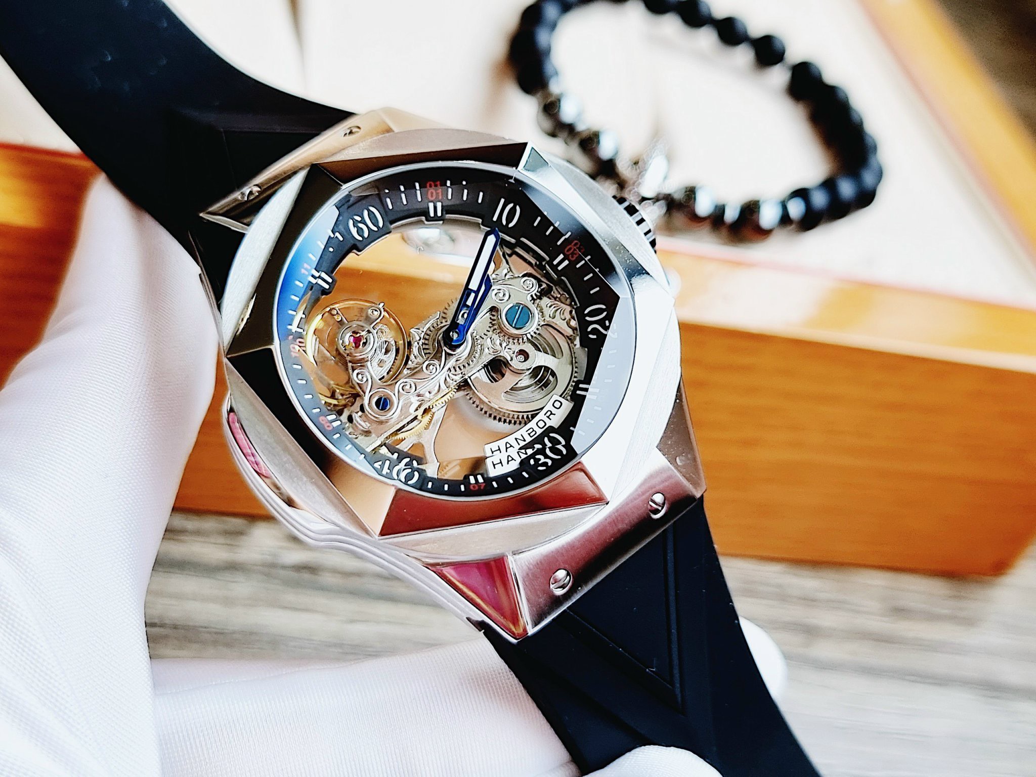 Nhắc đến đồng hồ, chúng ta thường nghĩ ngay đến thời gian cũng như hàm chứa nhiều điều xảy ra trong cuộc đời mỗi người. Đồng hồ đeo tay đang dần trở thành một món phụ kiện thời trang không thể thiếu trong tủ đồ của mỗi người! Nếu bạn đang băn khoăn và muốn tìm mua một mẫu đồng hồ nam chính hãng với chất lượng tốt, giá cả hợp lý cùng chính sách bảo hành dài và uy tín thì hãy cùng DWatch tham khảo Đồng hồ chính hãng nam máy lộ cơ Hanboro By Huboler 44mm nhé !