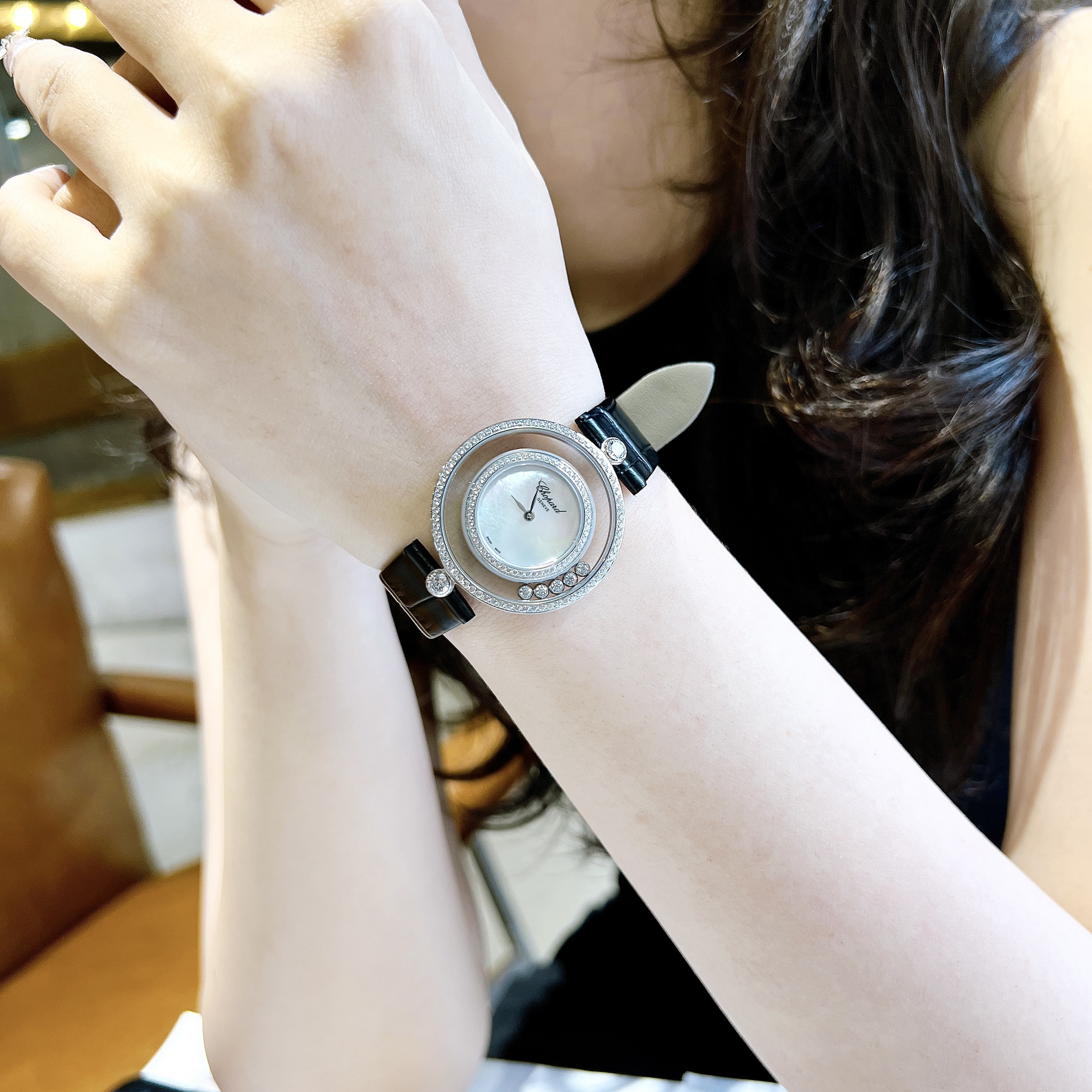 Đồng hồ Chopard siêu cấp nữ mặt tròn đính đá xoay