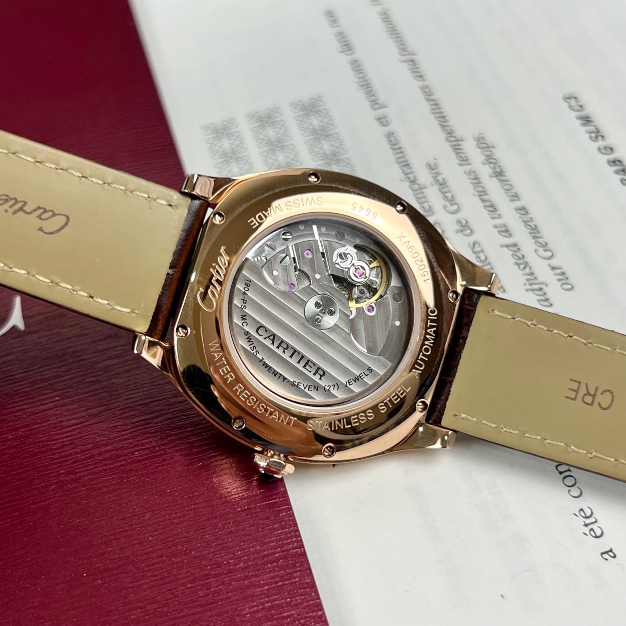 Đồng hồ cơ nam dây da Cartier Fake cao cấp mạ vàng hồng cao cấp