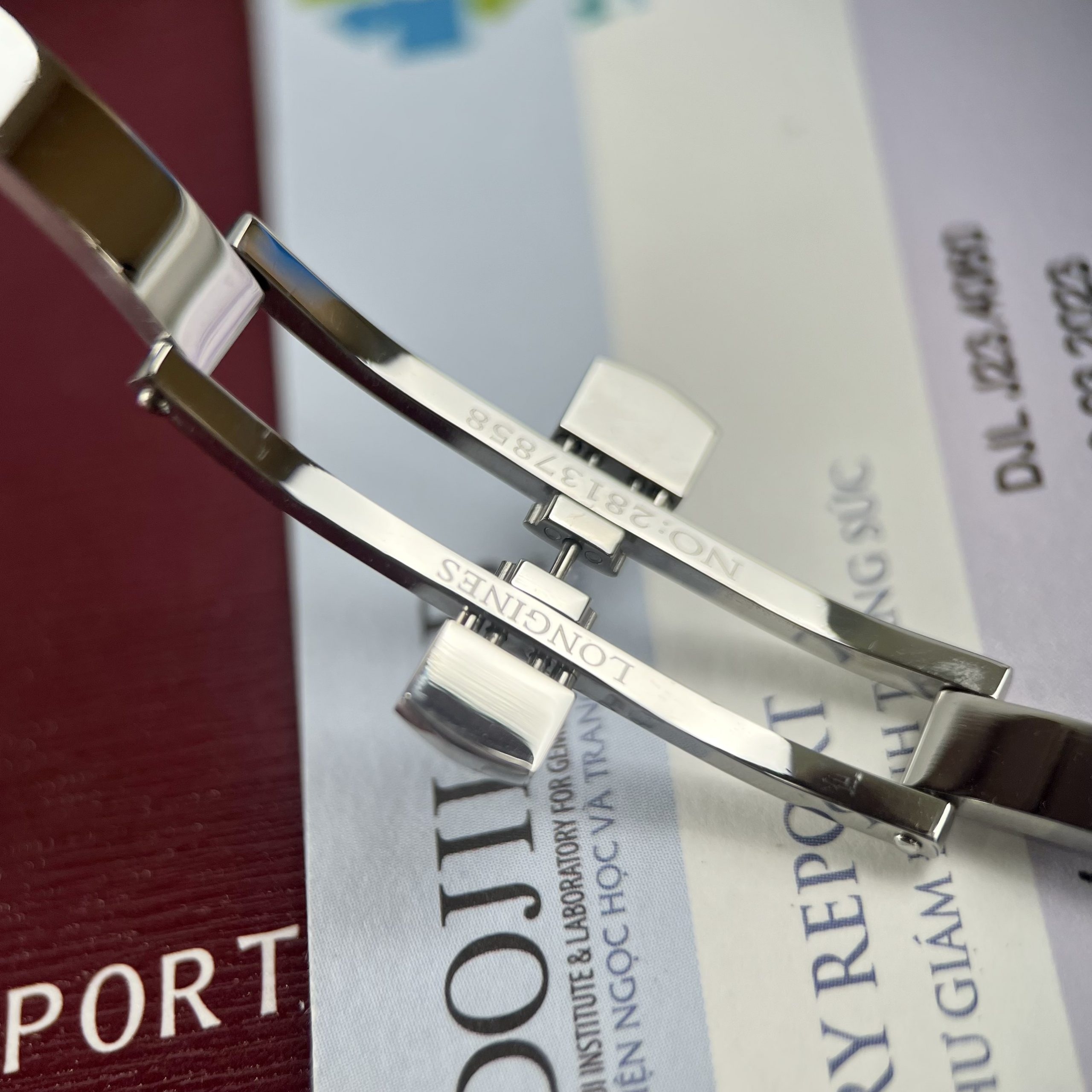 Khoá đồng hồ Longines Master triện khắc logo rõ nét