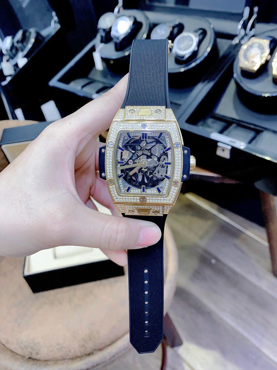 Đồng Hồ Cơ Nam Đính Đá Hublot Big Bang Super Fake 1:1 Cao Cấp 45x53mm