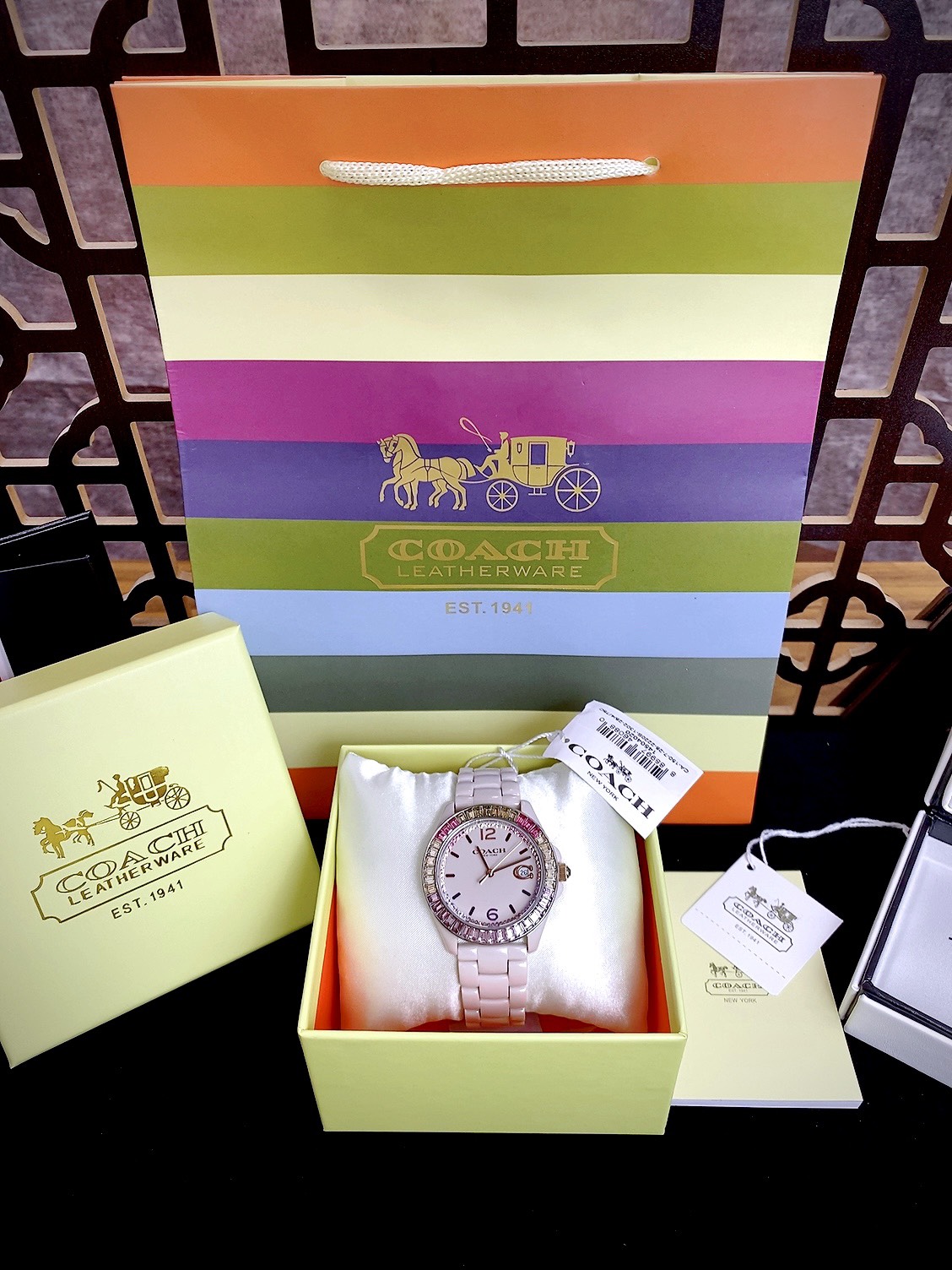 Đồng hồ Coach Ceramic Rainbow Crystal Bezal nữ máy Quartz Nhật