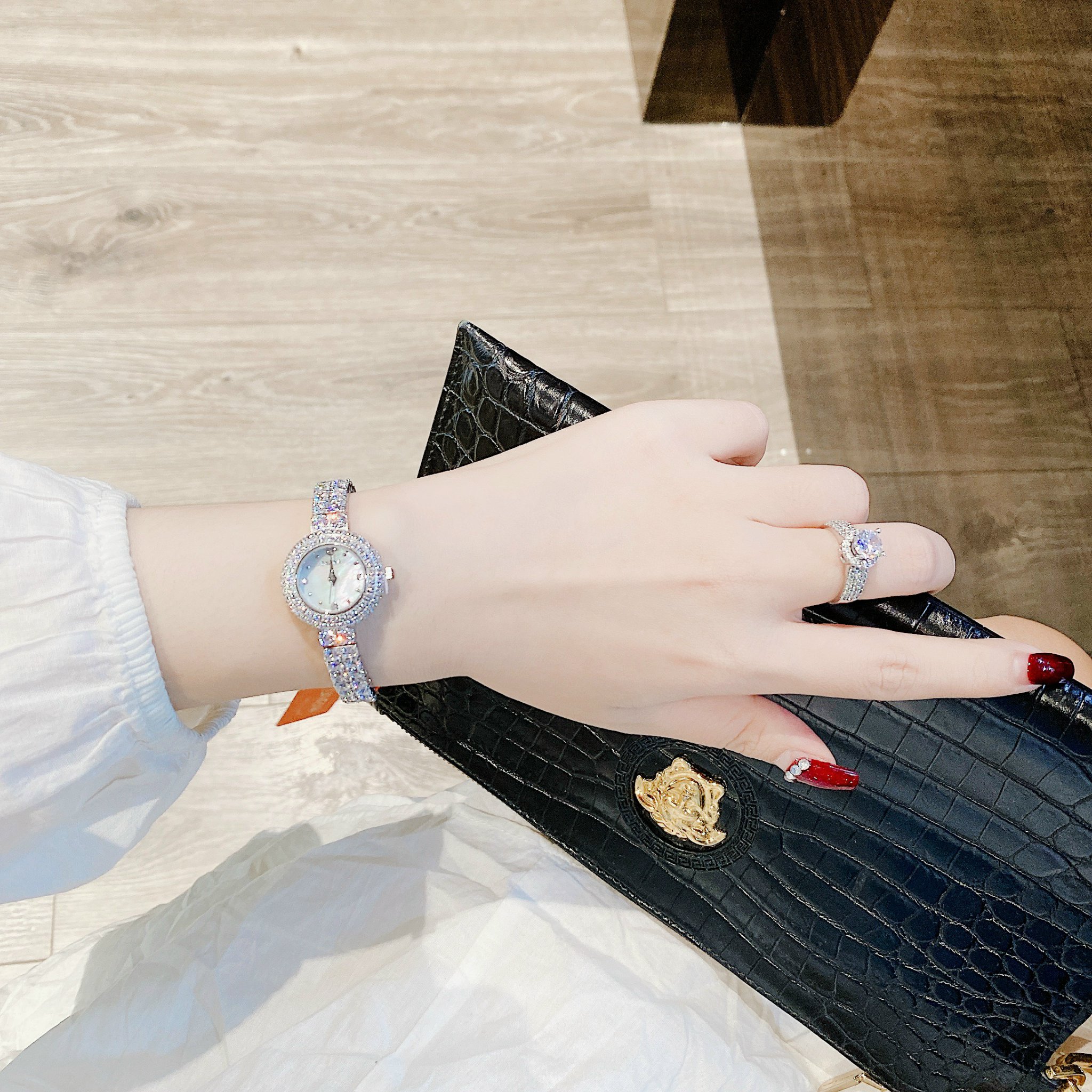 Đồng hồ Davena chính hãng nữ 60858 đính đá mặt khảm trai