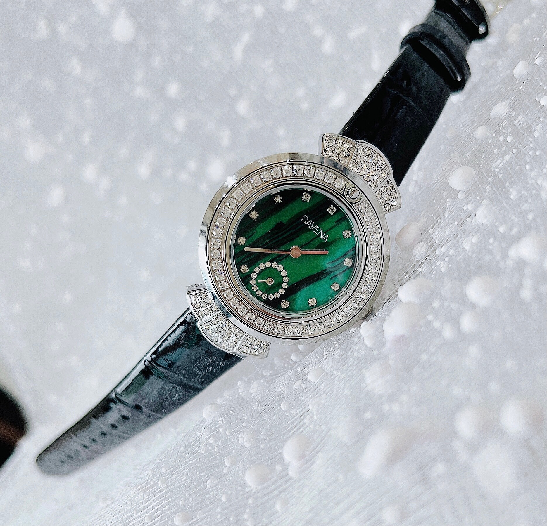 Đồng hồ Davena nữ đính đá – khẳng định kỹ năng chế tác khéo léo và tỉ mỉ bởi độ tinh khiết cũng như màu sắc của đá quý đều phải hoàn hảo tuyệt đối, không có một sự chênh lệch nào.