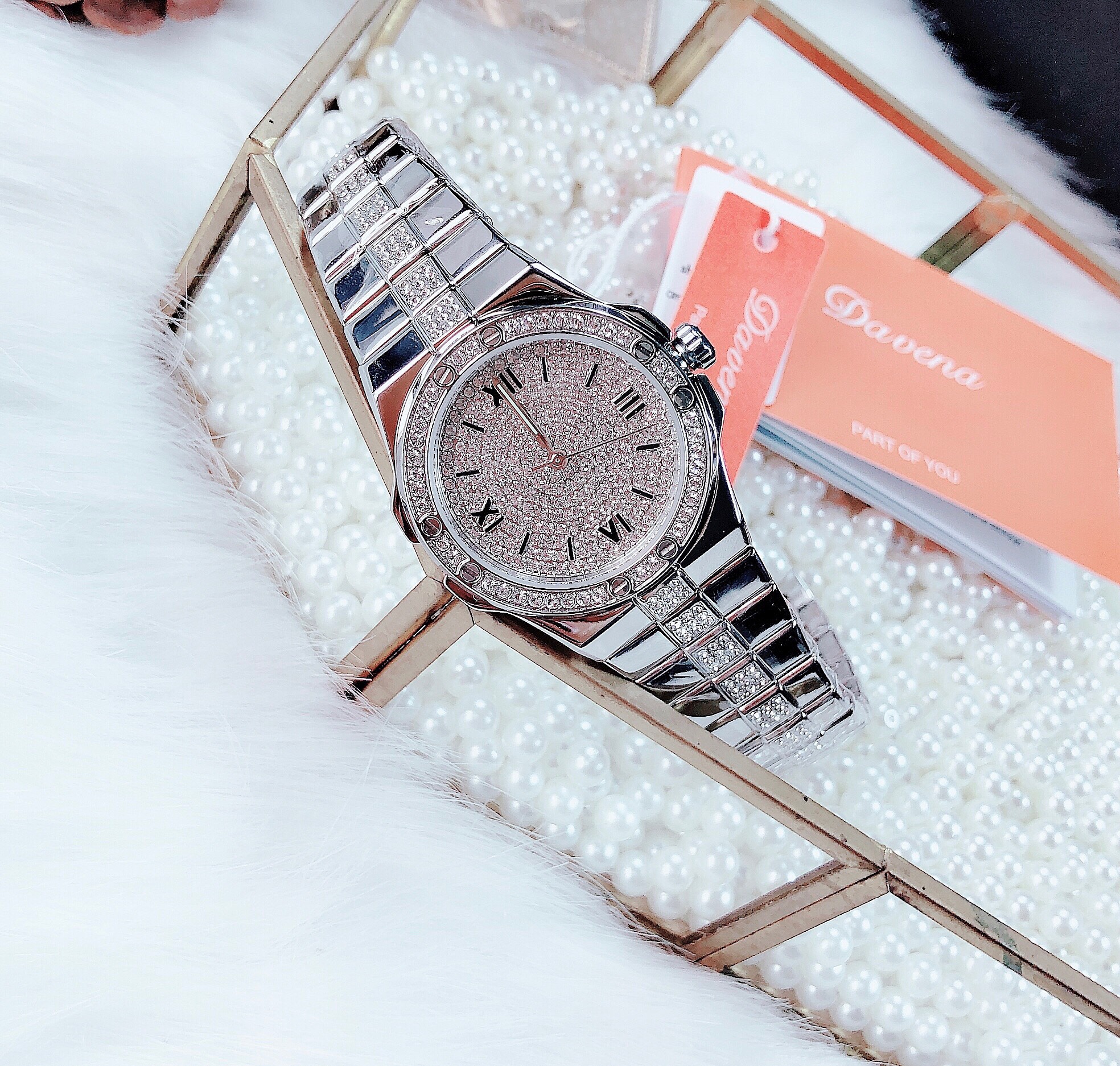 Đồng hồ Davena nữ chính hãng dây kim loại đính đá