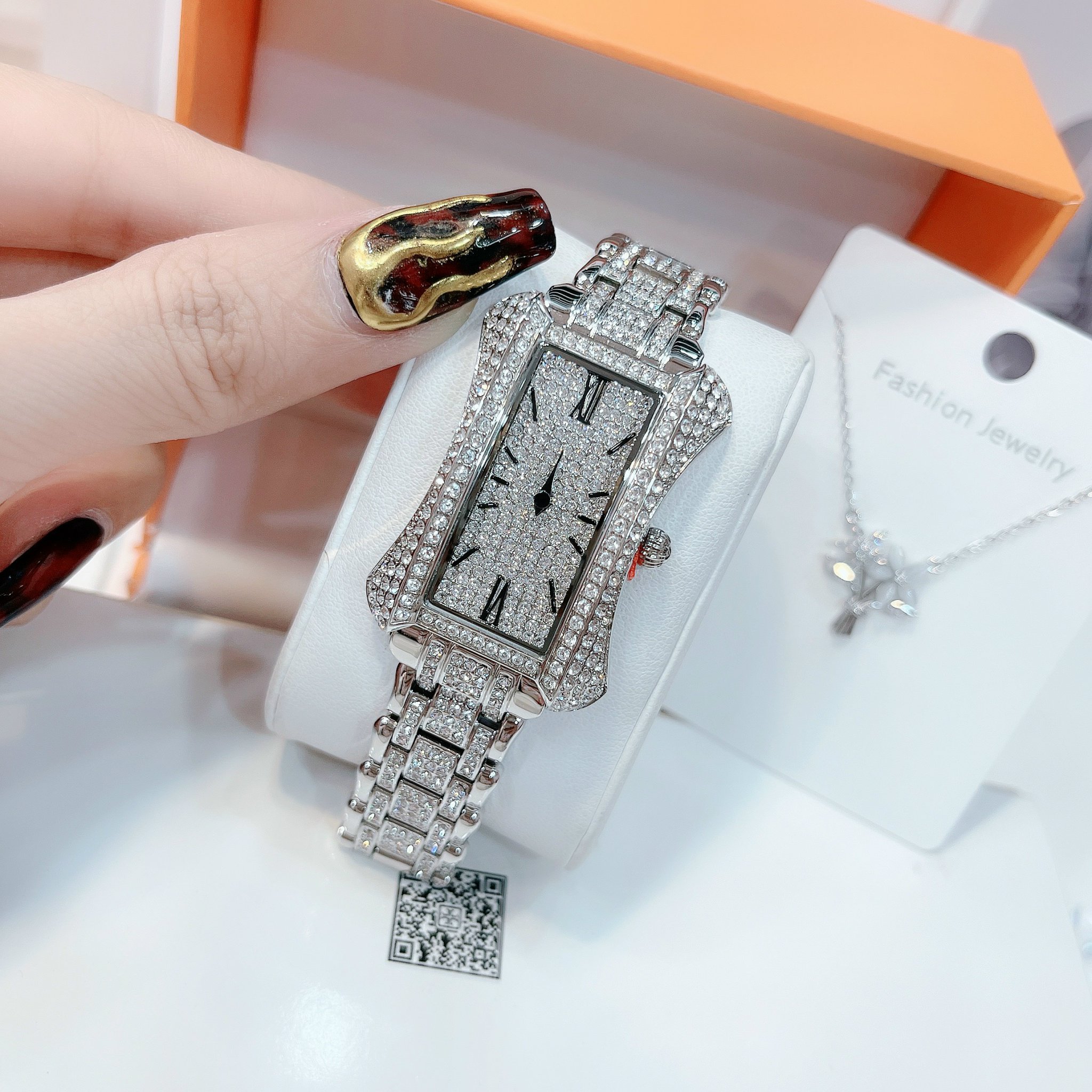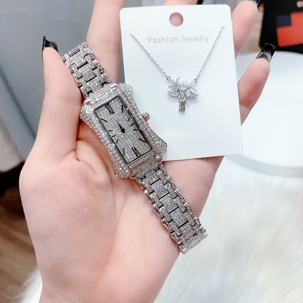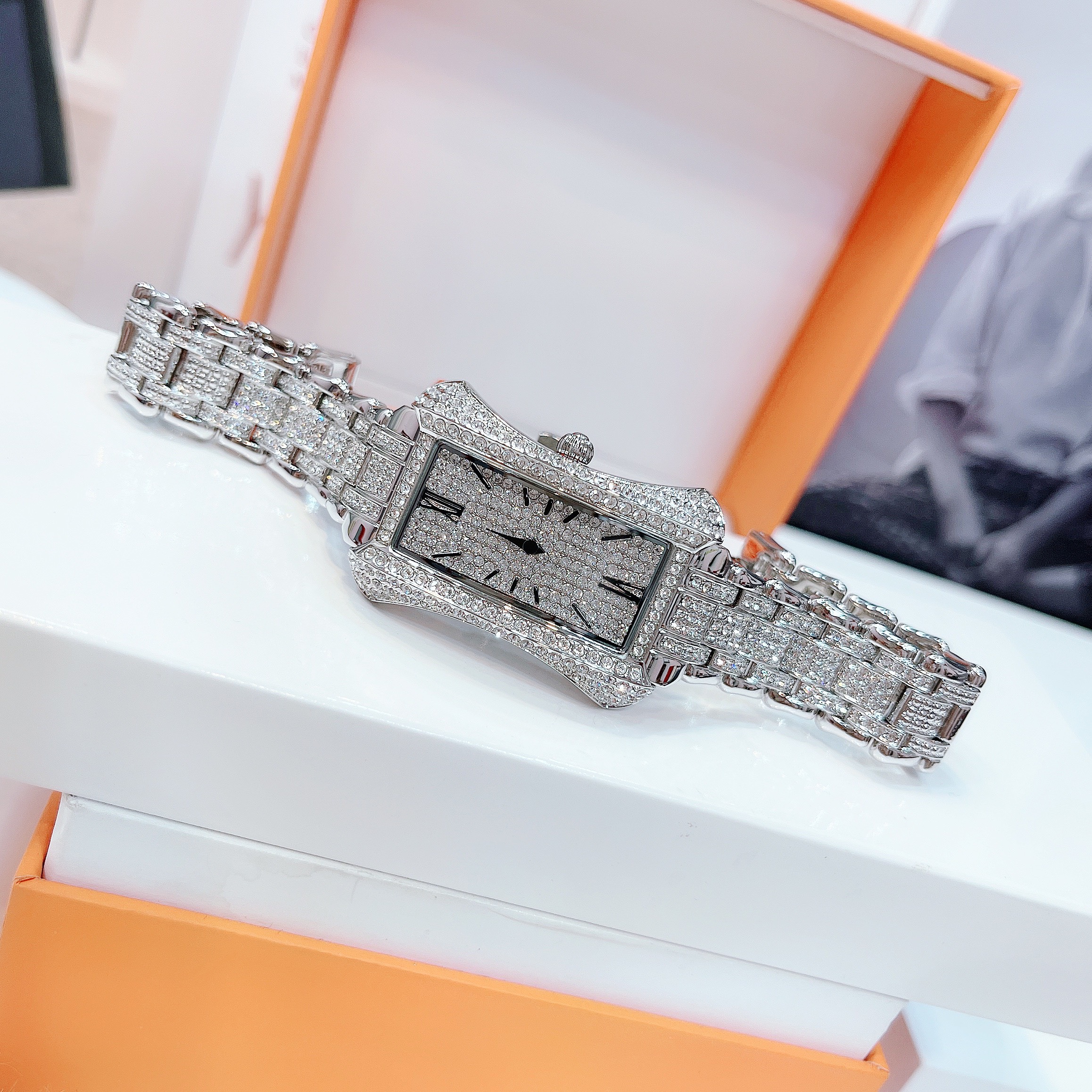 - Đồng hồ Davena nữ chính hãng mặt chữ nhật cá tính và phong cách với những viên đá nhỏ đính full mặt