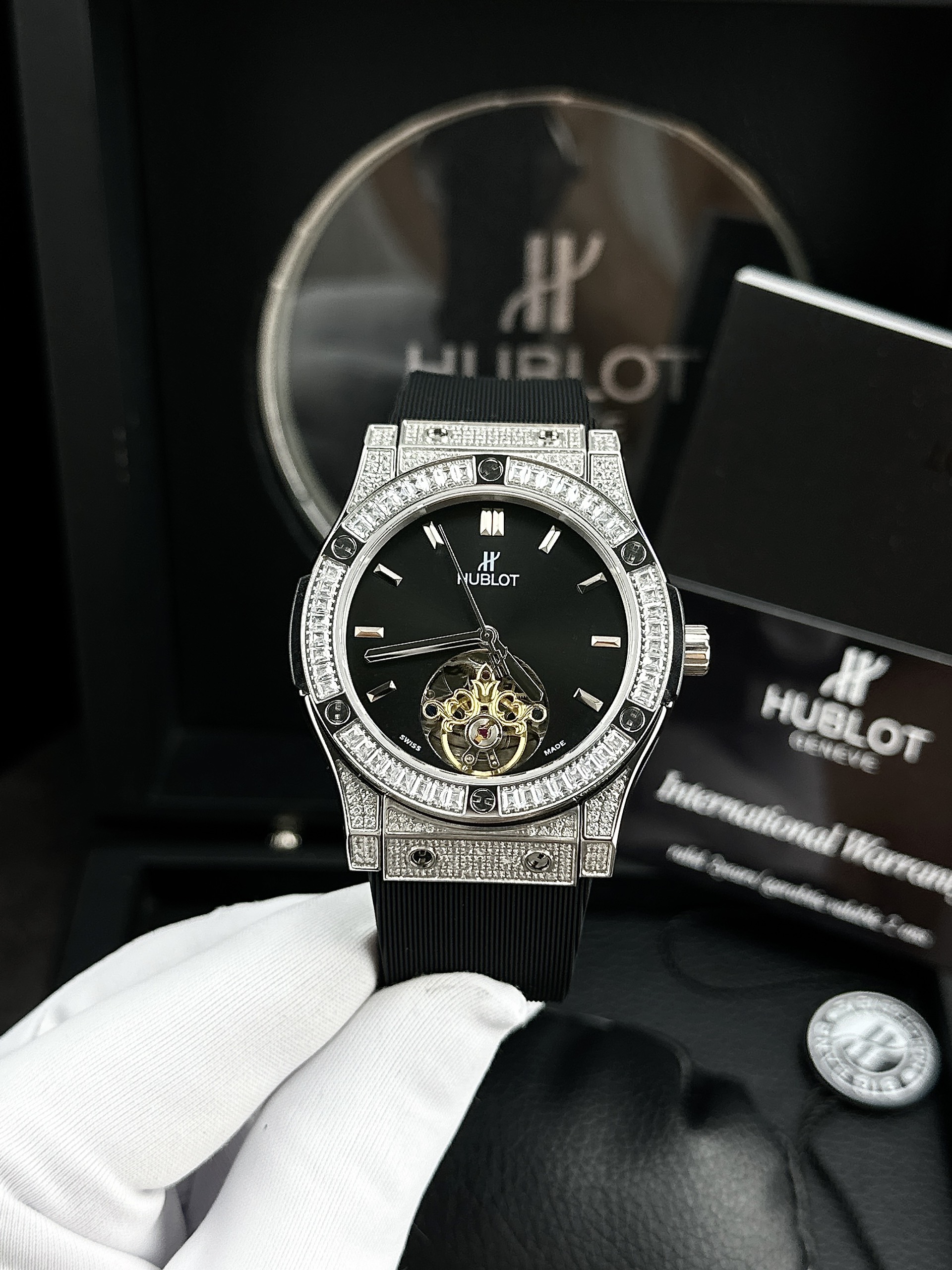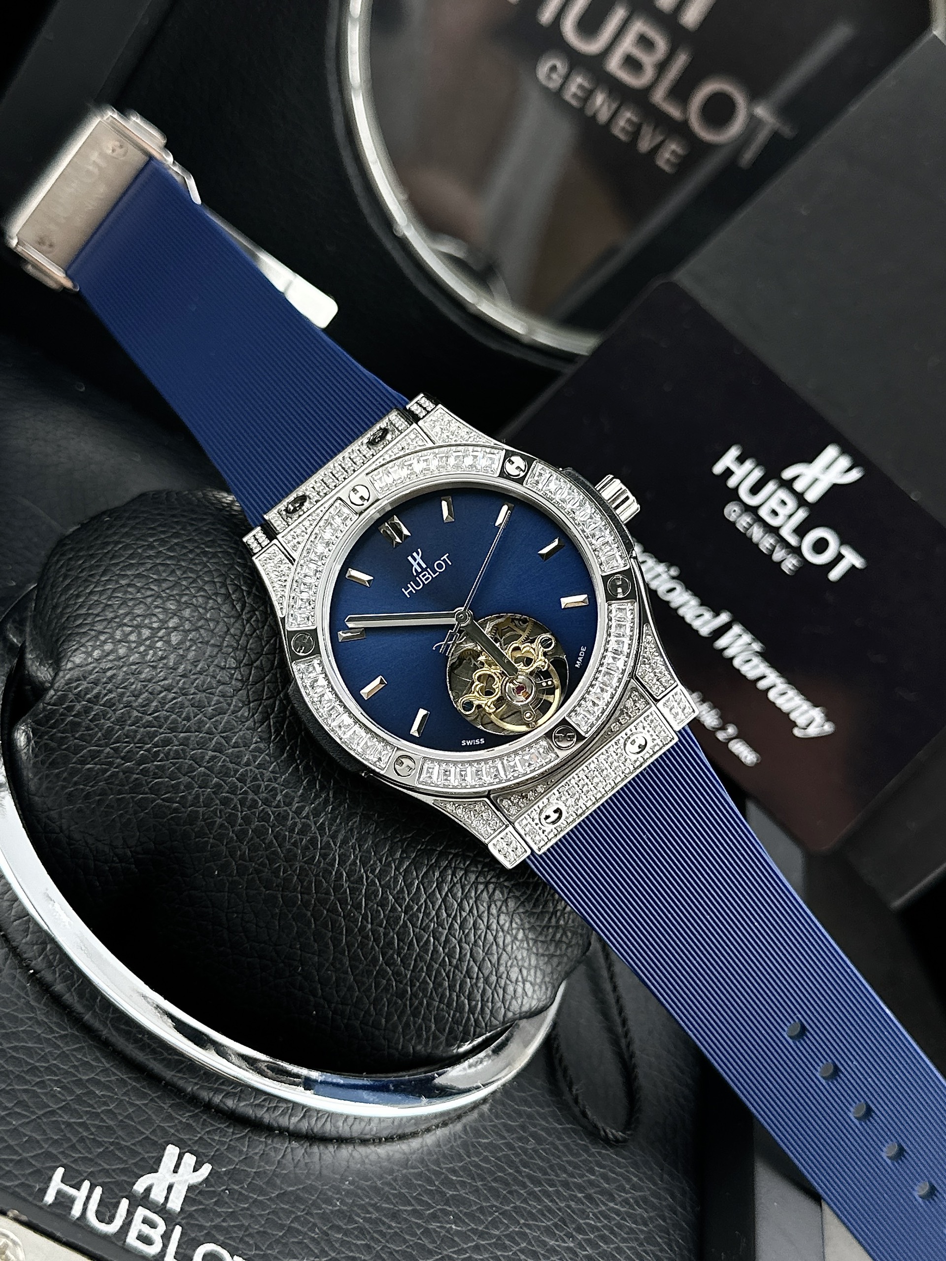 - Đồng hồ đính đá Hublot cơ lộ máy Fake cao cấp máy Nhật thiết kế mặt cầu kì tinh xảo và nổi bật
