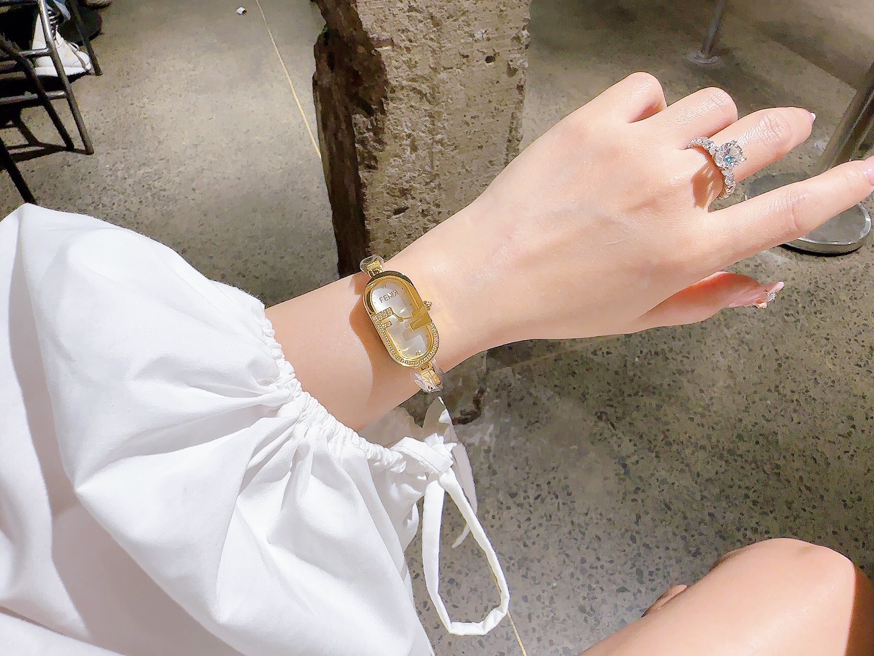 Đồng hồ Fendi Vertical nữ màu vàng Gold đính đá