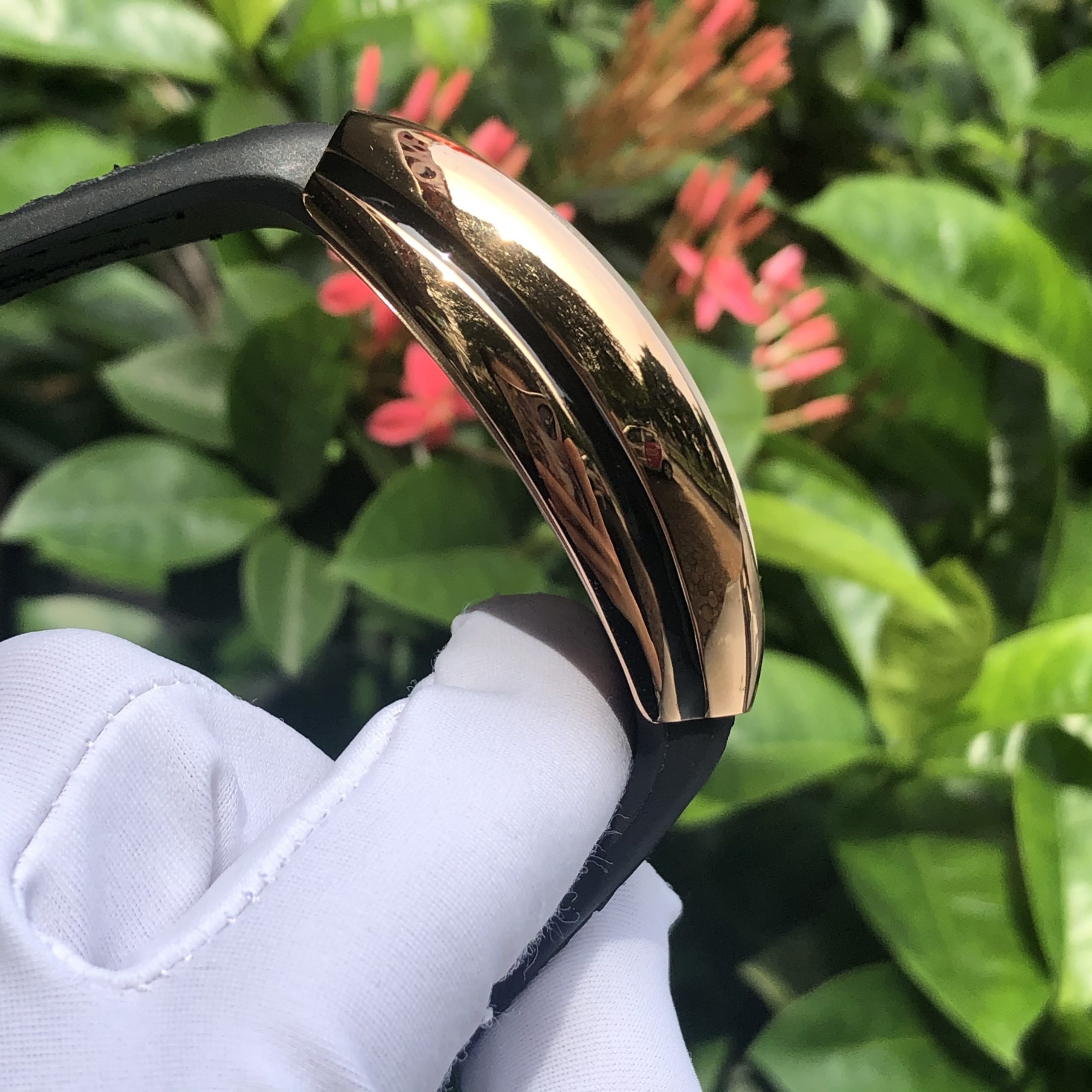 - Đồng hồ Franck Muller nam dây cao su bọc da, phần da bên ngoài tạo sự sang trọng hơn, phần cao su bên trong giúp đồng hồ đeo tay trở nên thoải mái dễ chịu hơn trong các hoạt động thường ngày.
