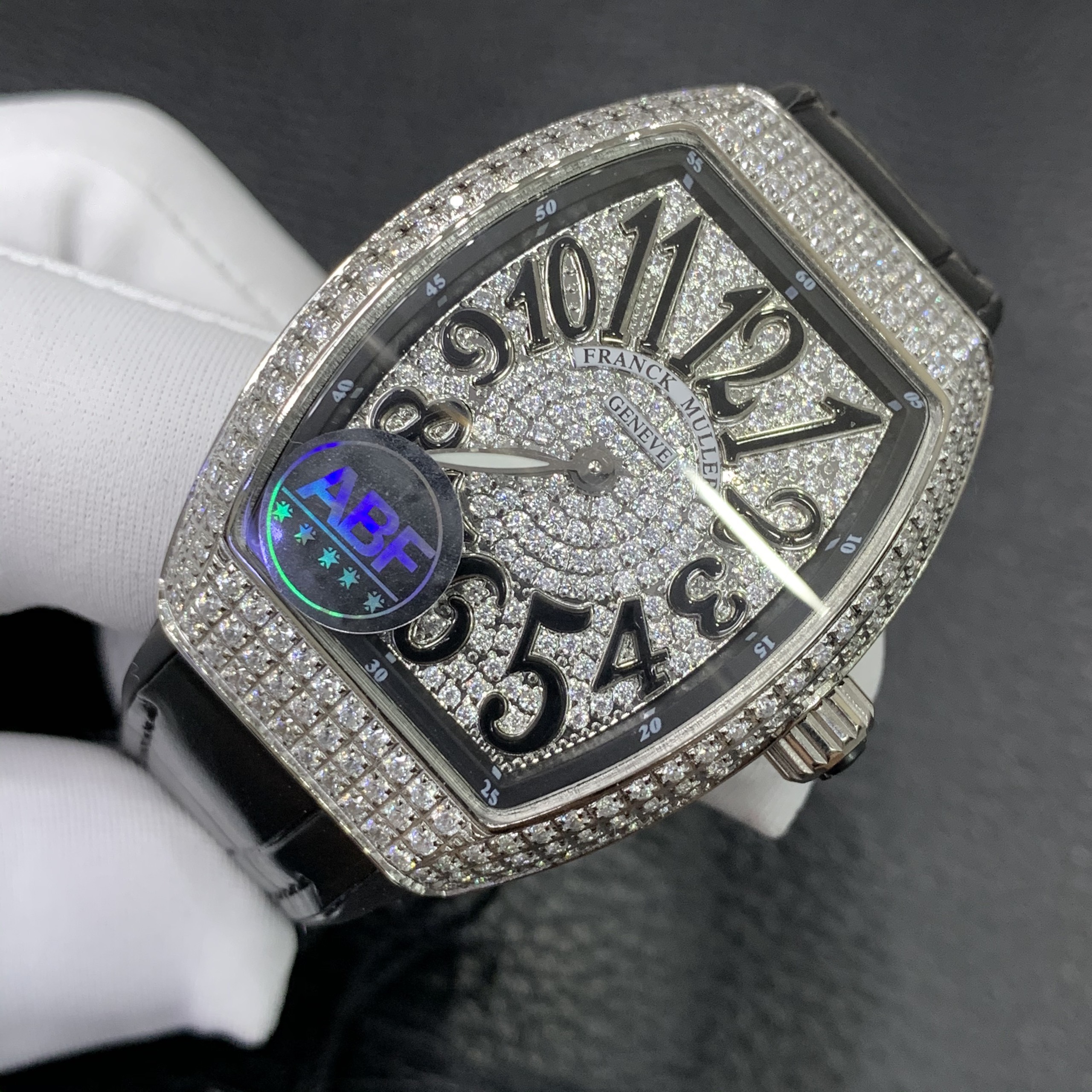 Đồng hồ Franck Muller nữ màu đen siêu cấp đính full kim cương nhân tạo FM V32