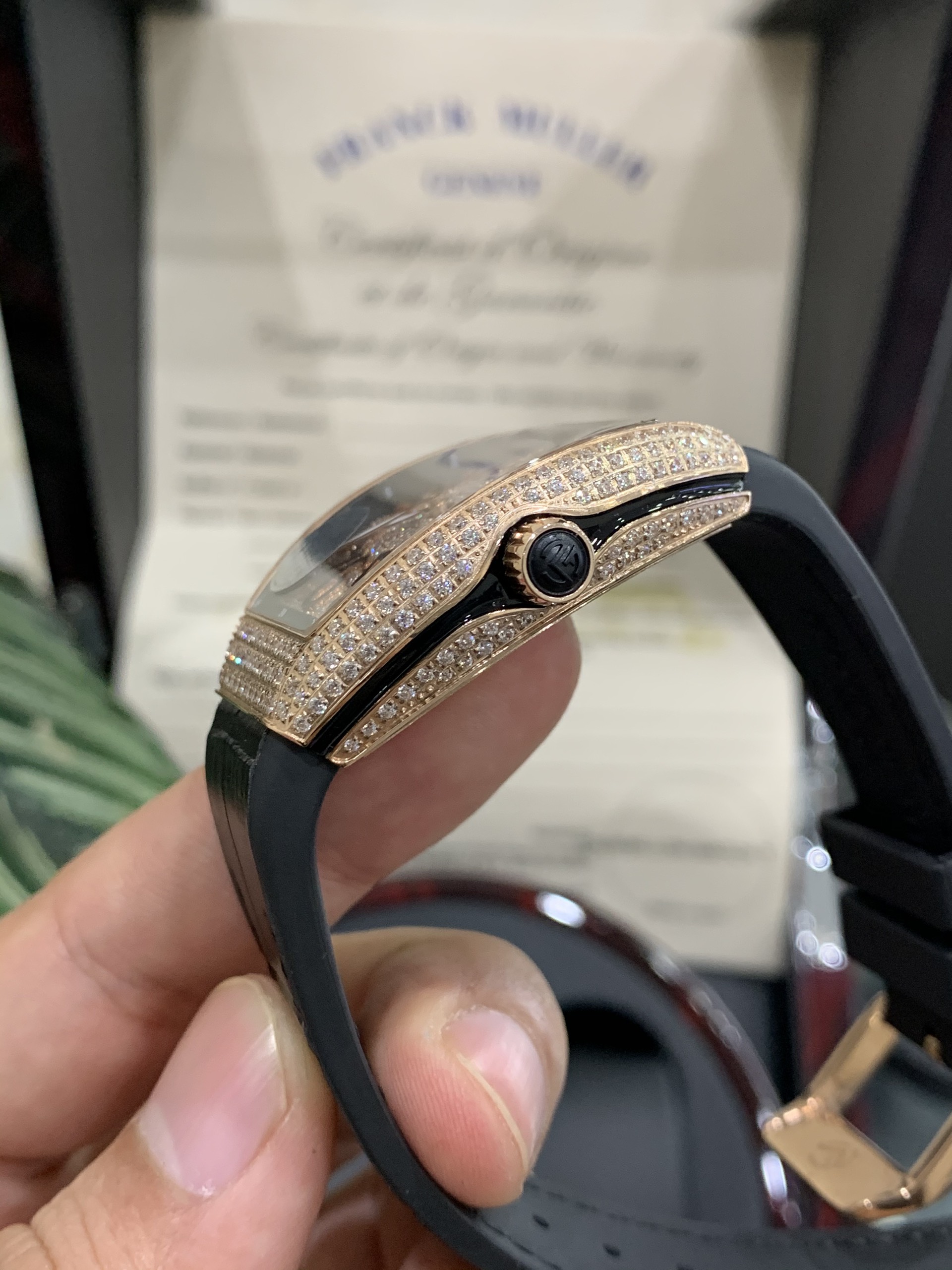 - Đồng hồ Franck Muller nữ siêu cấp đính kim cương nhân tạo sang chảnh, nổi bật, quyến rũ full mặt và viền