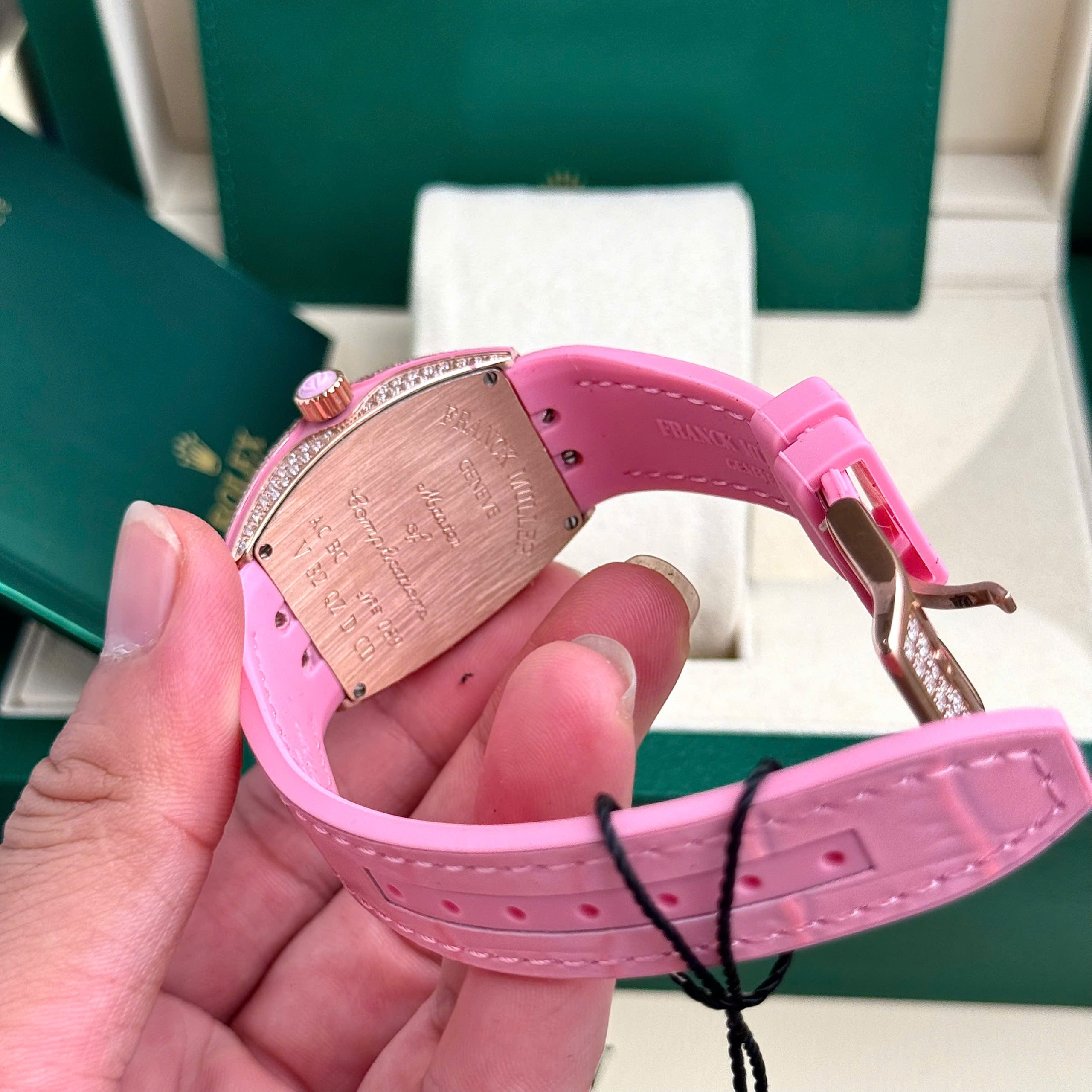 Đặt mua Đồng hồ Franck Muller V32 nữ đính đá dây cao su màu hồng 36mm