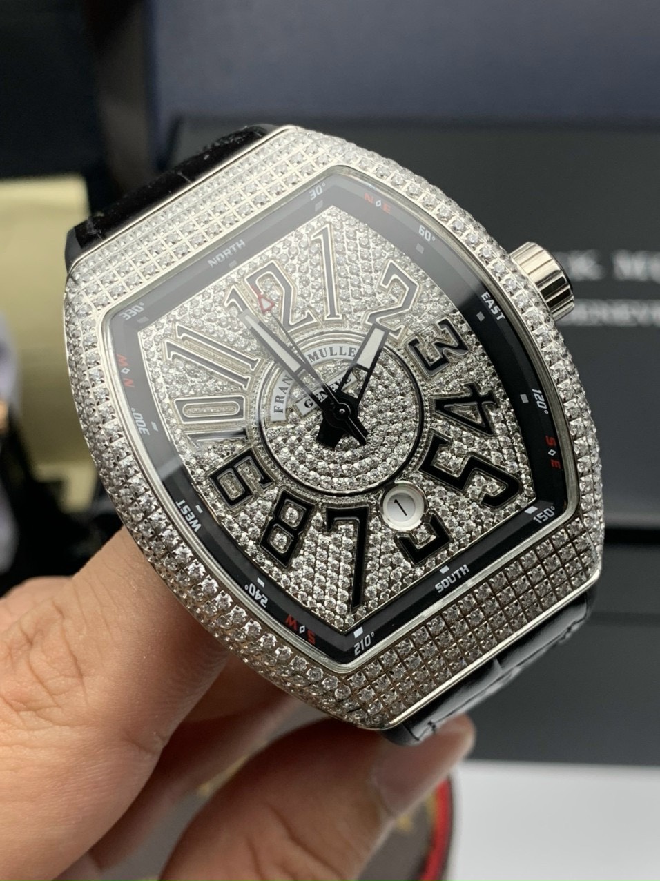 Đồng hồ Franck Muller V45 ABF đính full kim cương nhân tạo vỏ bạc 45mm