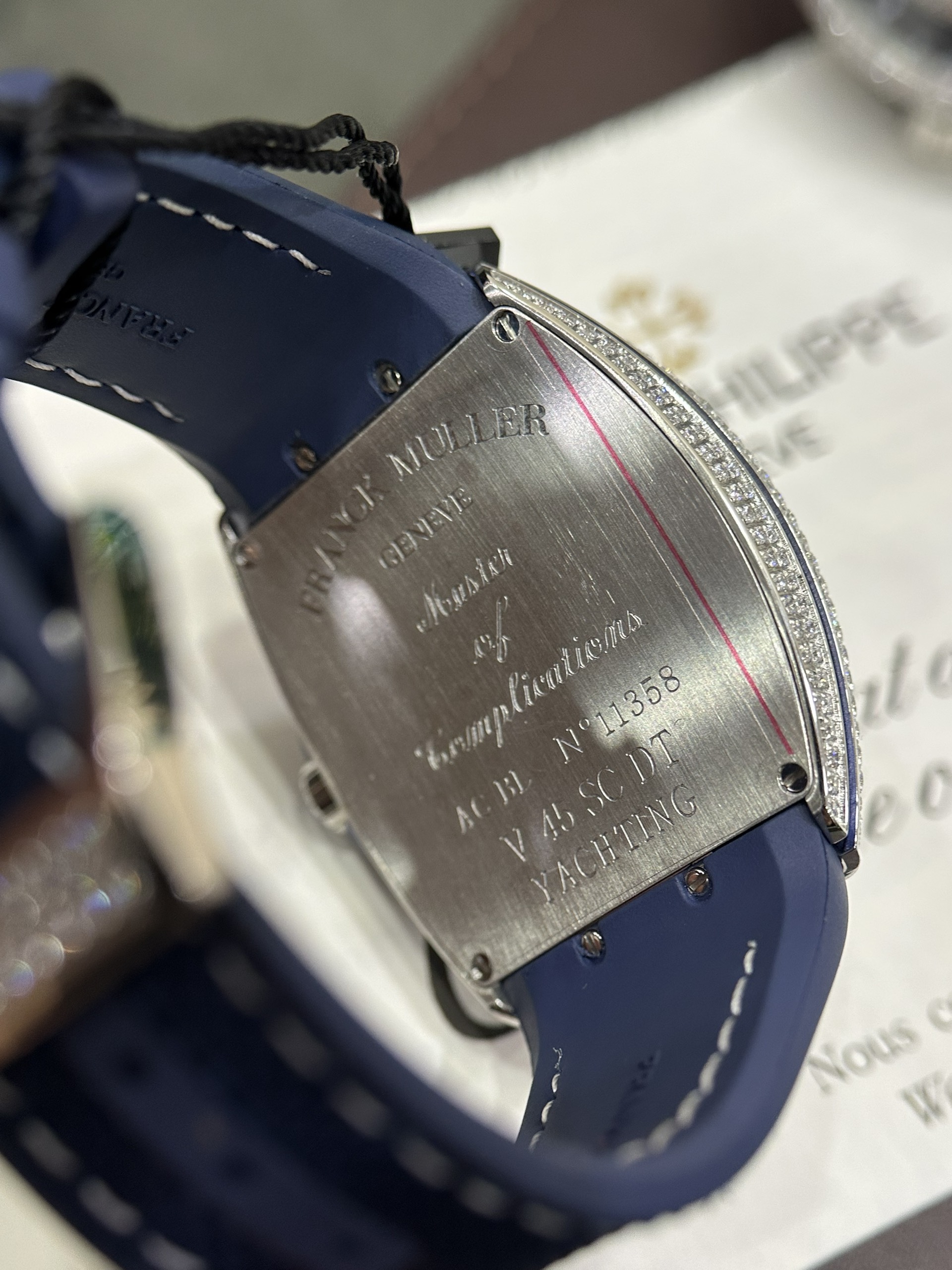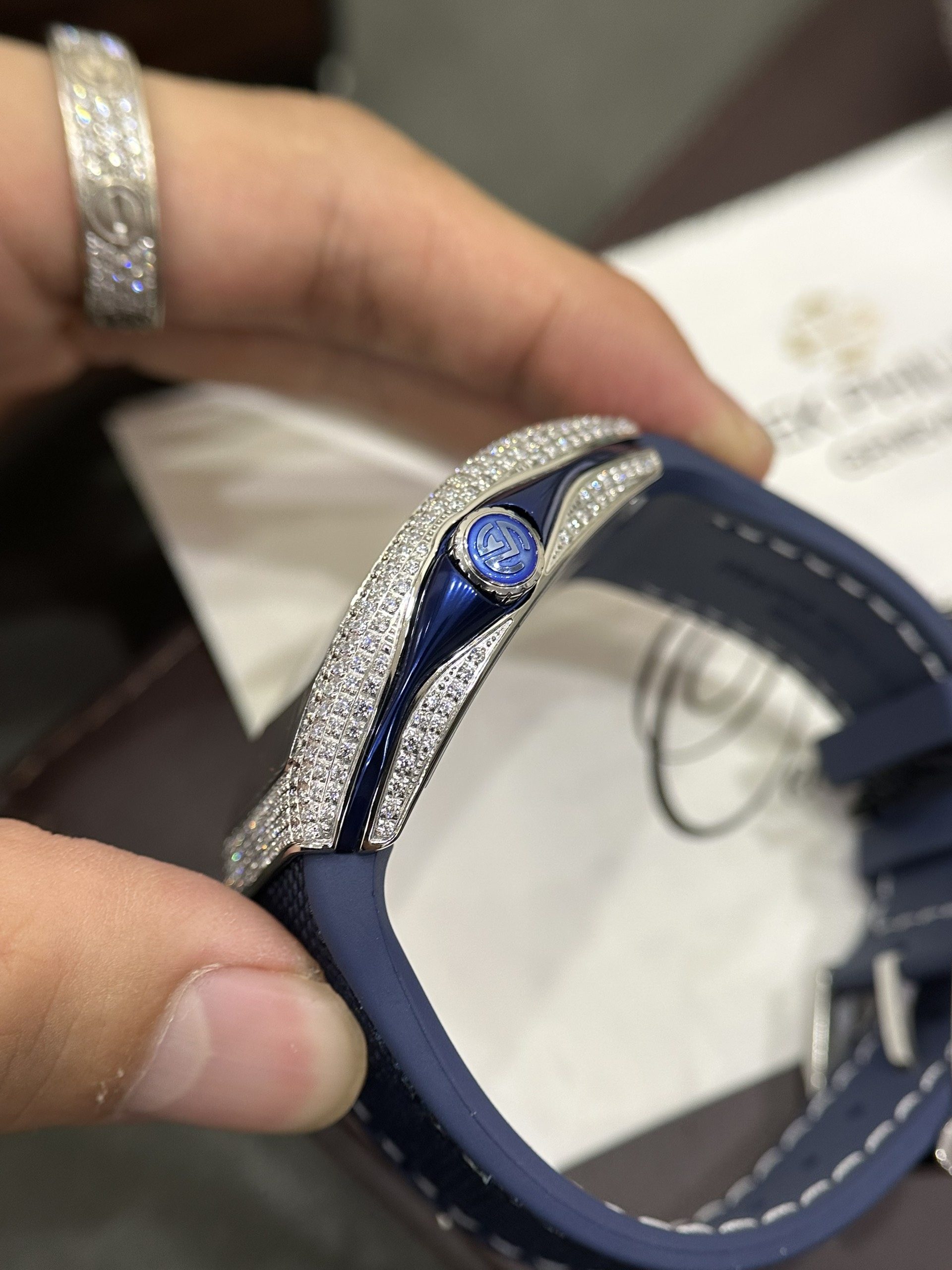 Đồng hồ Franck Muller V45 nam đính full kim cương nhân tạo màu xanh