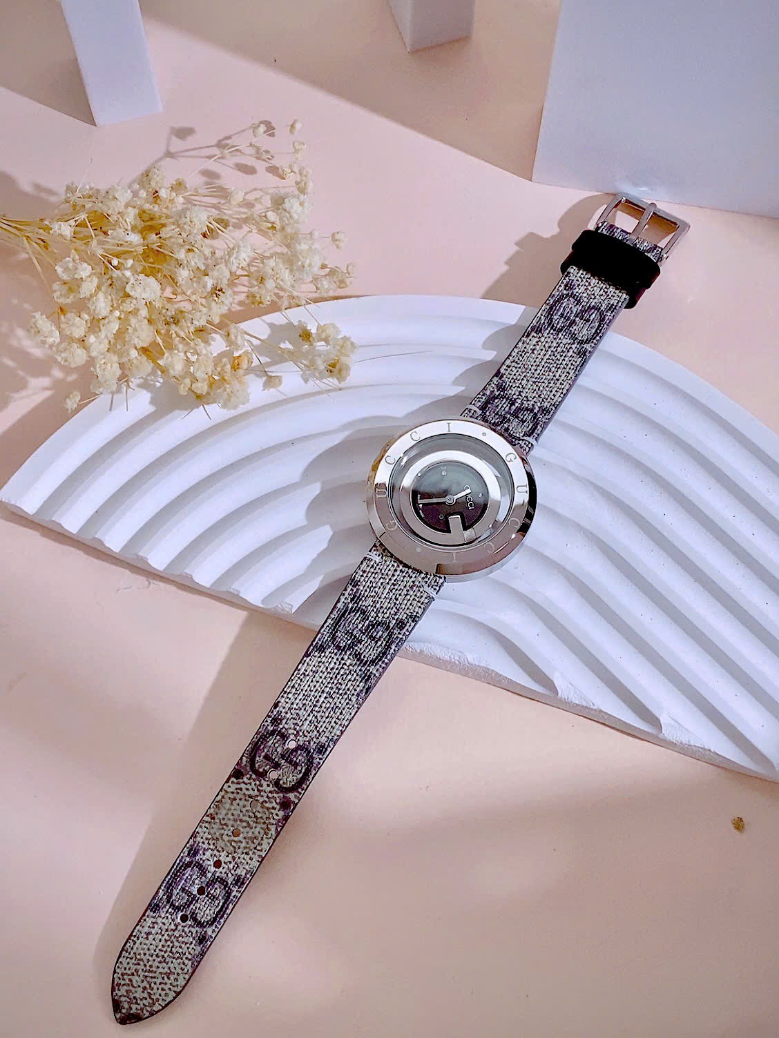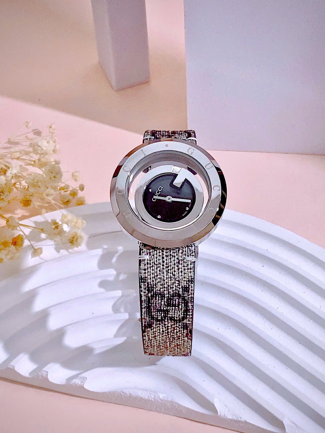 Đồng hồ Gucci nữ mặt đen dây họa tiết sang trọng Like Auth 38mm