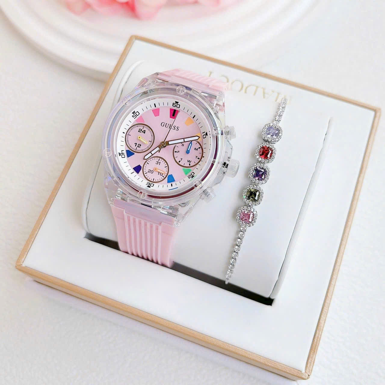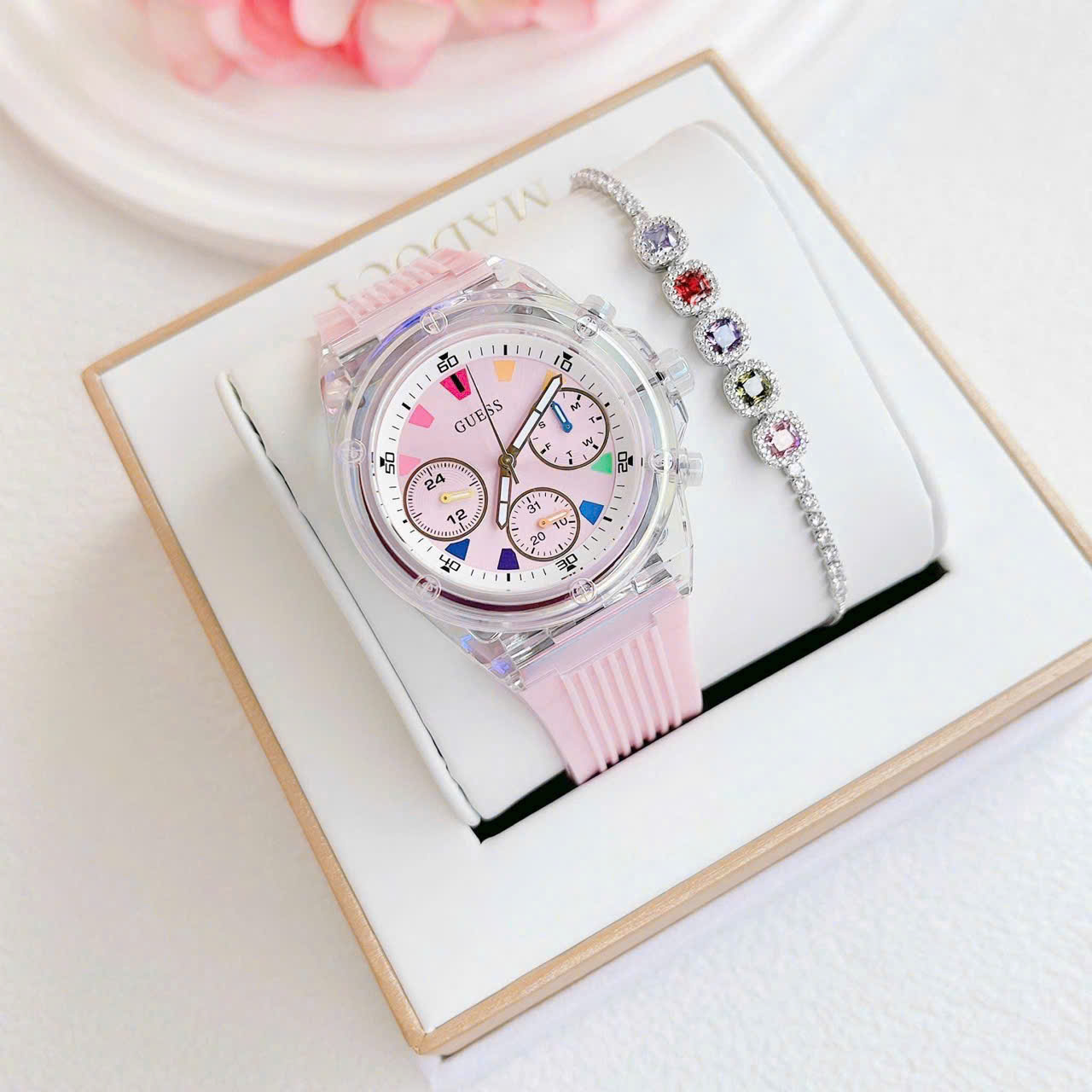 Đặt mua Đồng hồ Guess Eco Friendly nữ màu hông dây cao su like auth 39mm