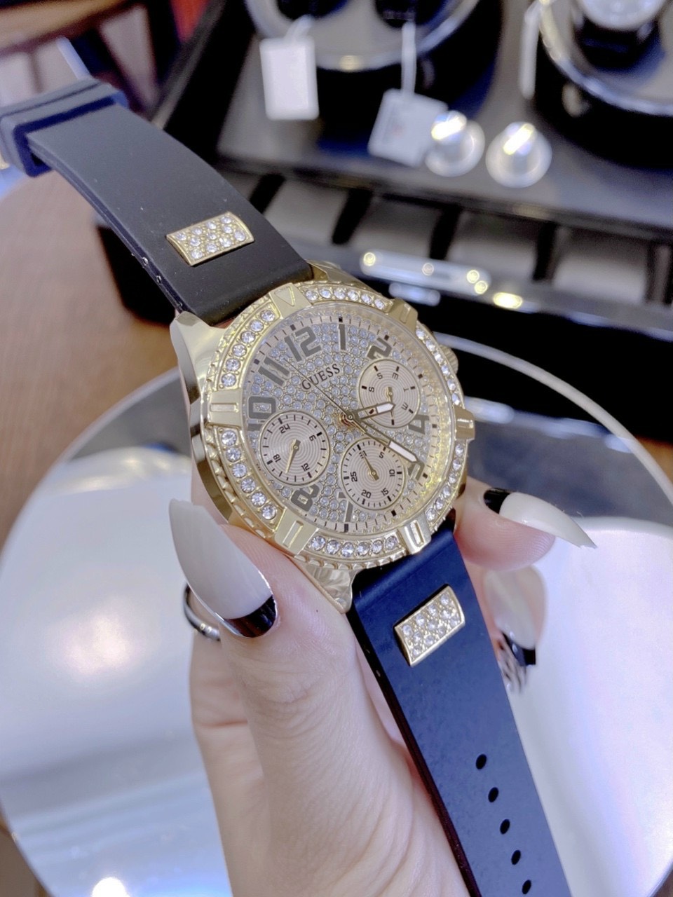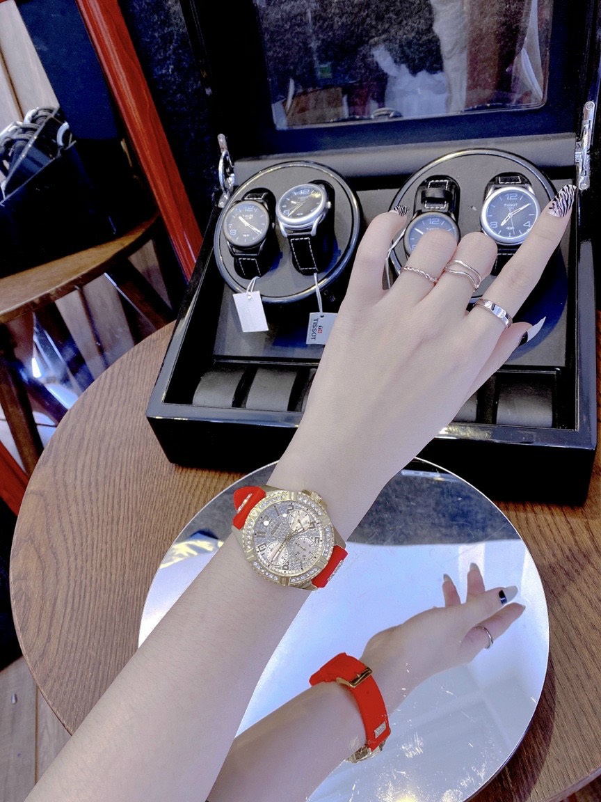 - Viền đồng hồ Guess nữ đính đá sáng lấp lánh xinh xắn