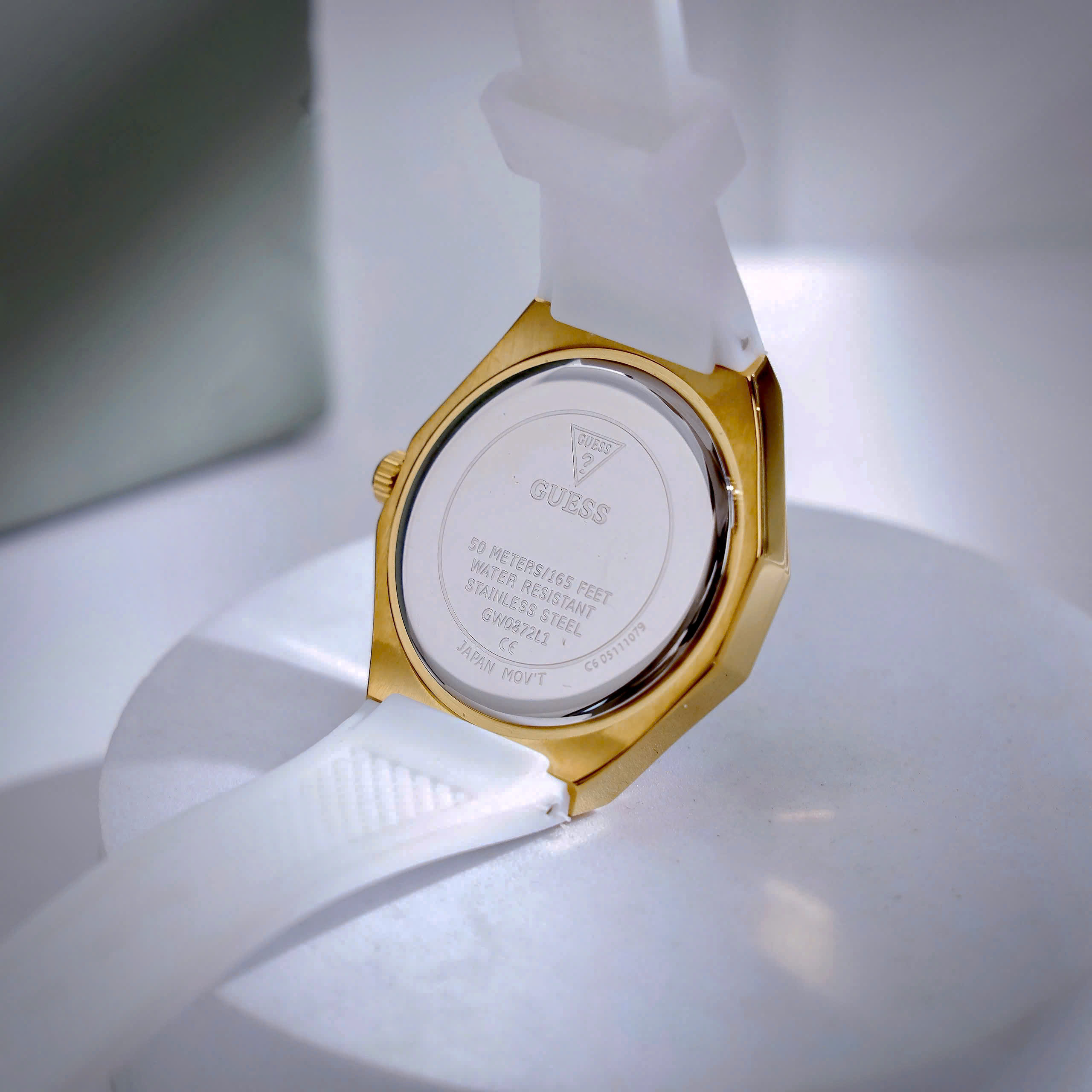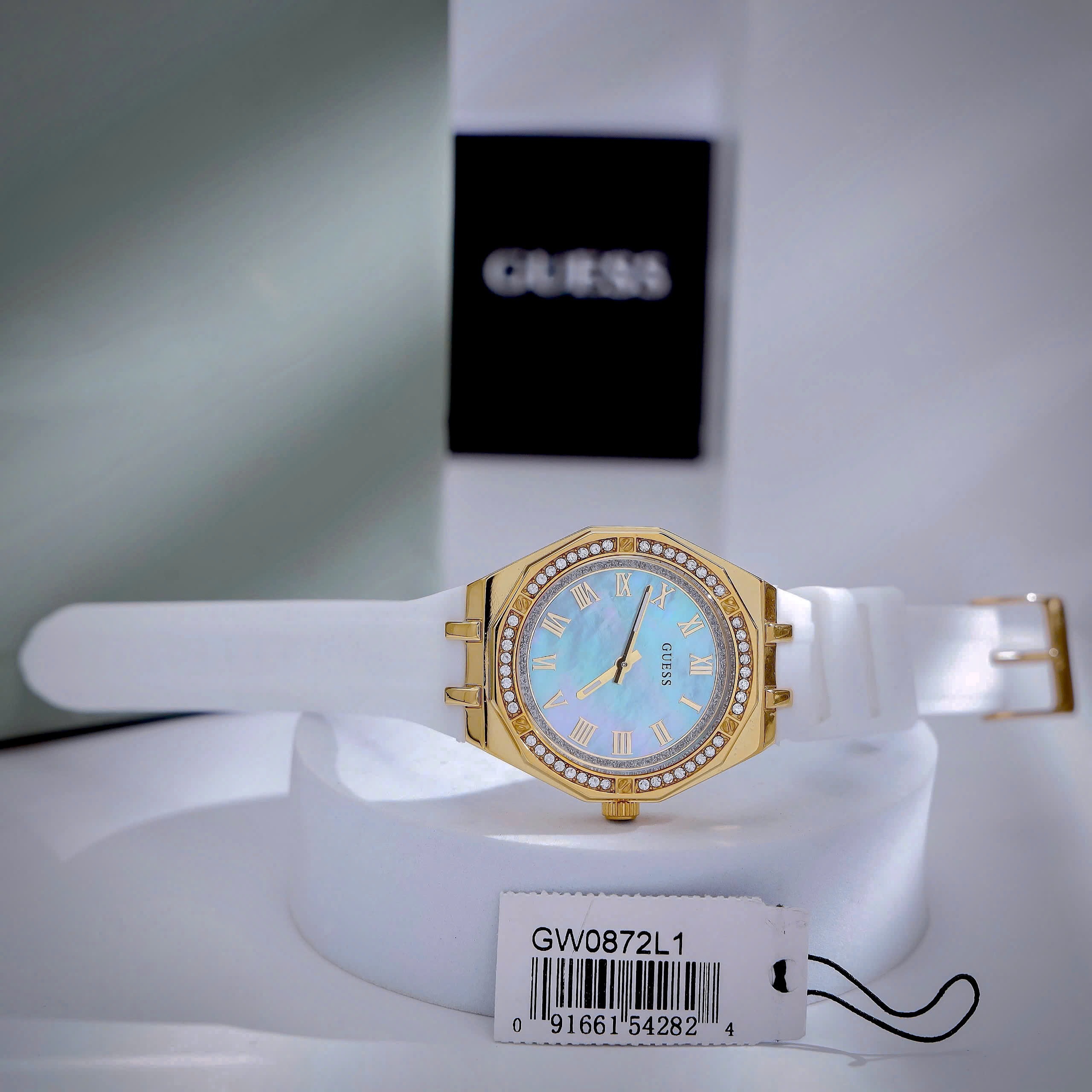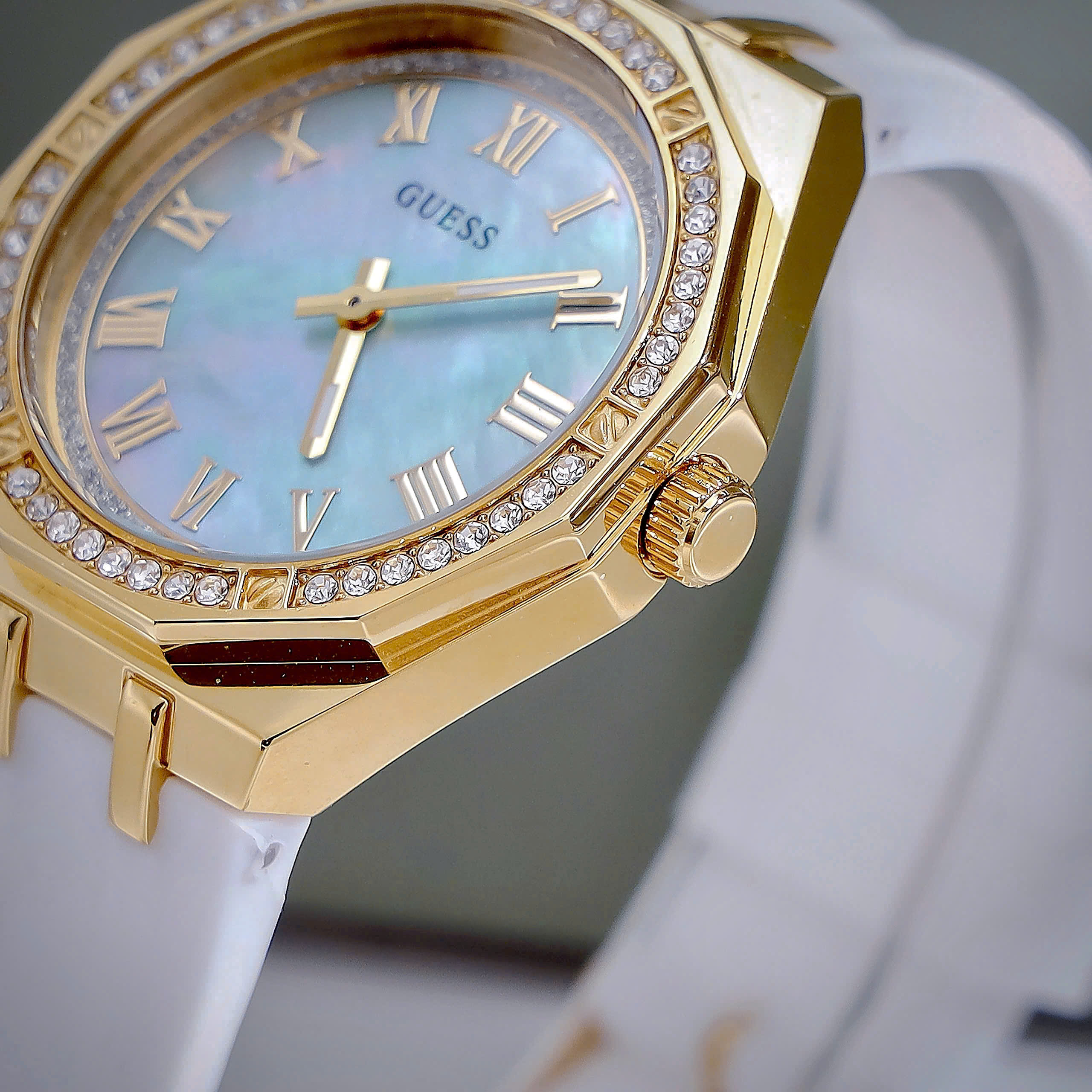 Đồng hồ Guess Octagonal Ladies dây cao su trắng đính đá fake cao cấp 36mm