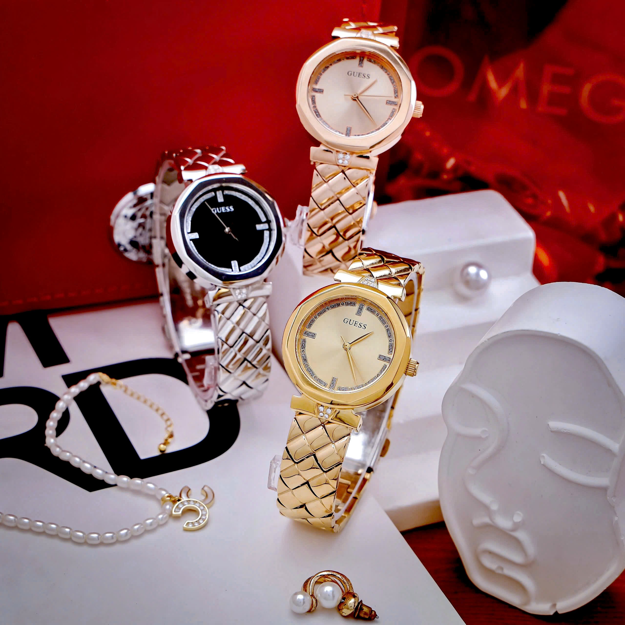 Đồng hồ Guess Rumour nữ dây kim loại cọc số đính đá Like Auth 34mm