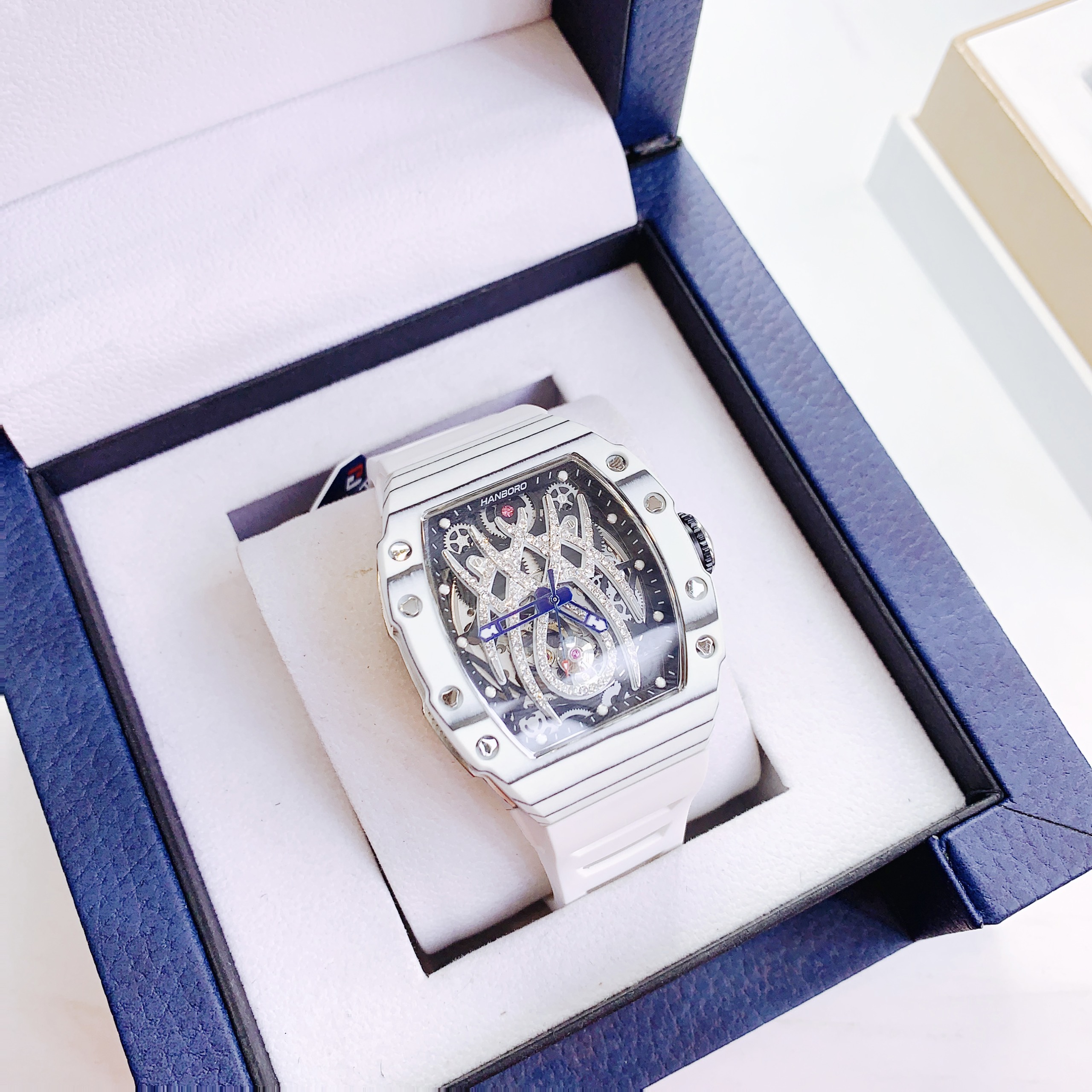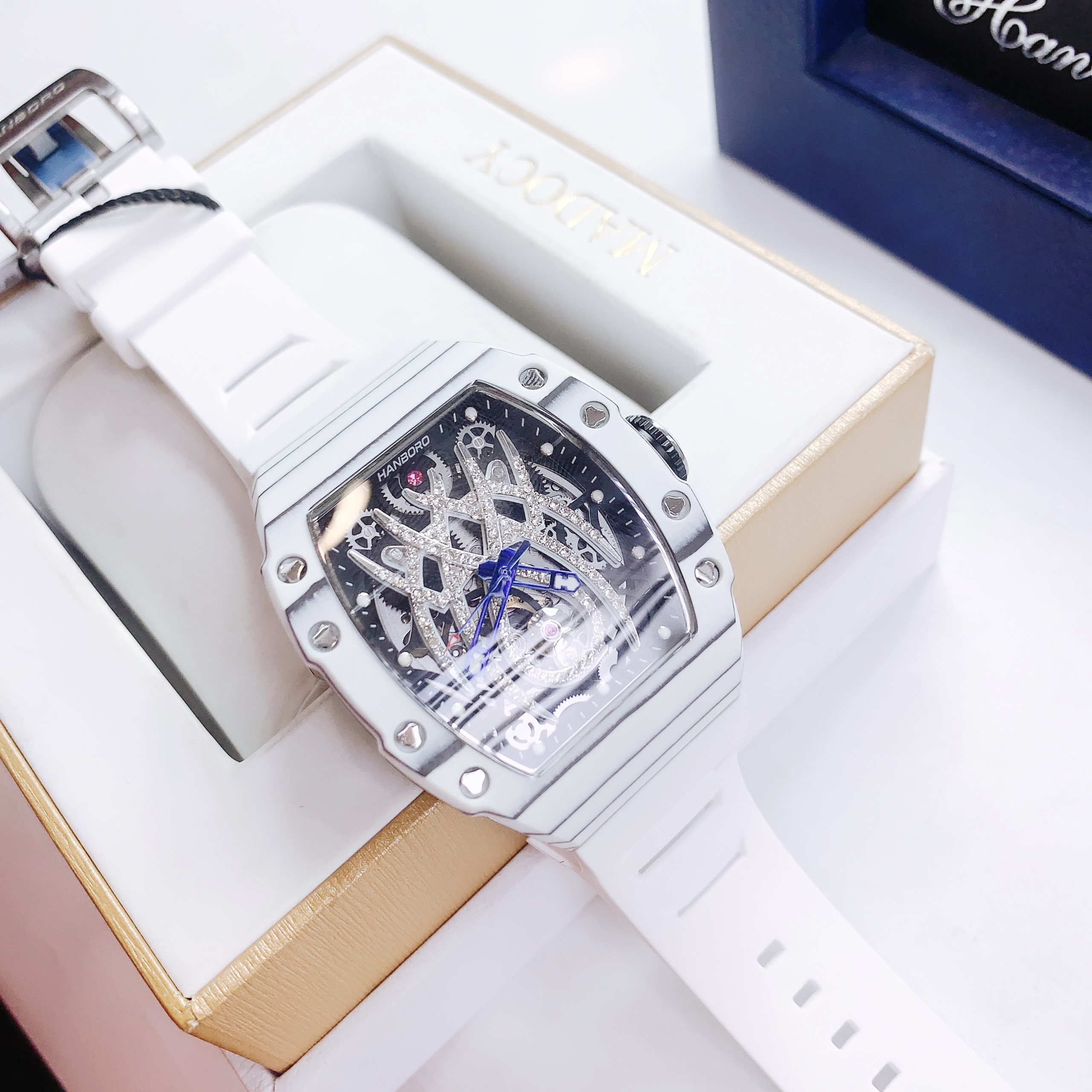 Đồng hồ Hanboro chính hãng nam vỏ carbon màu trắng