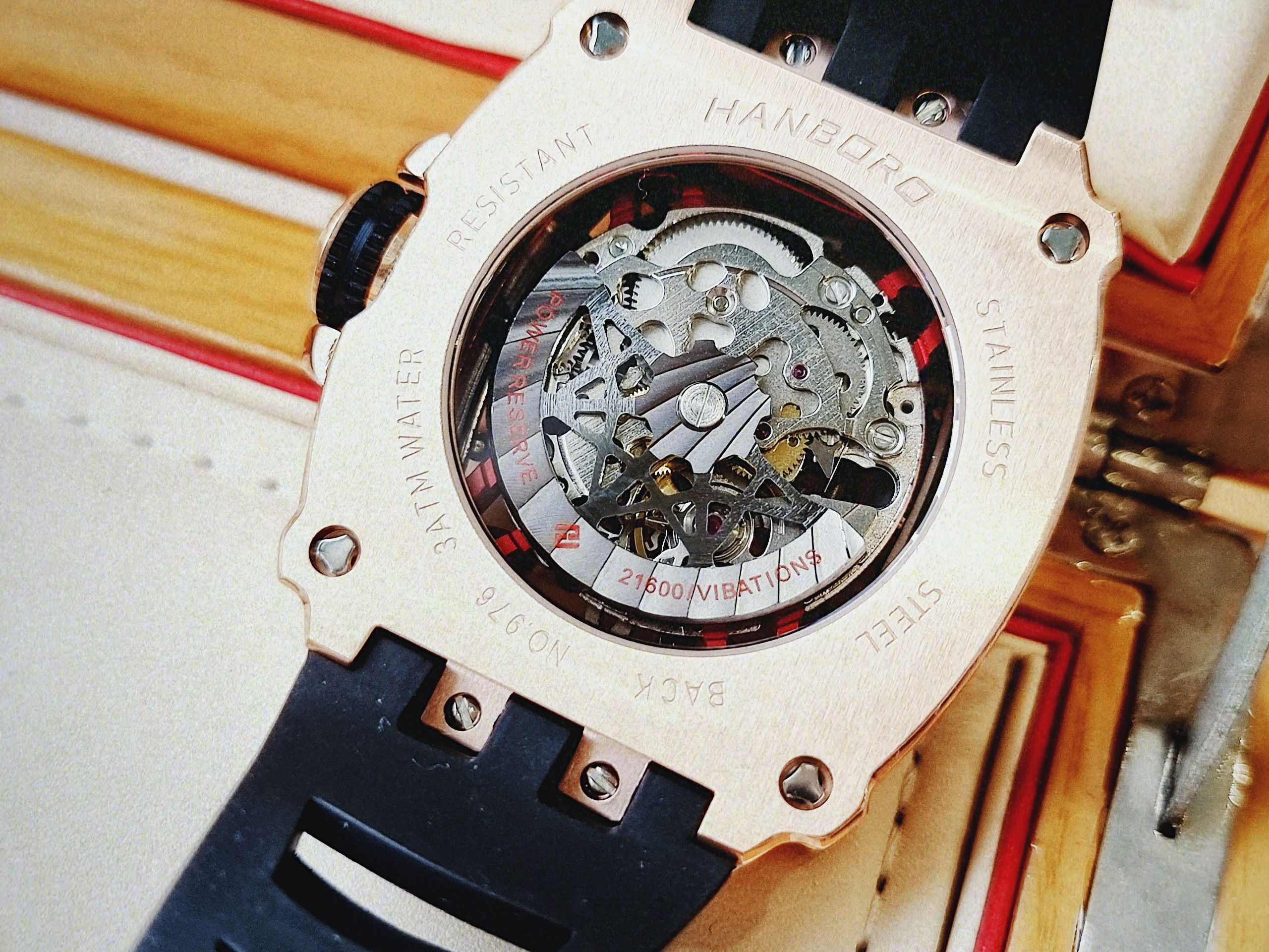 Đặt mua Đồng hồ Hanboro By Huboler nam máy cơ chính hãng màu rose gold 44mm