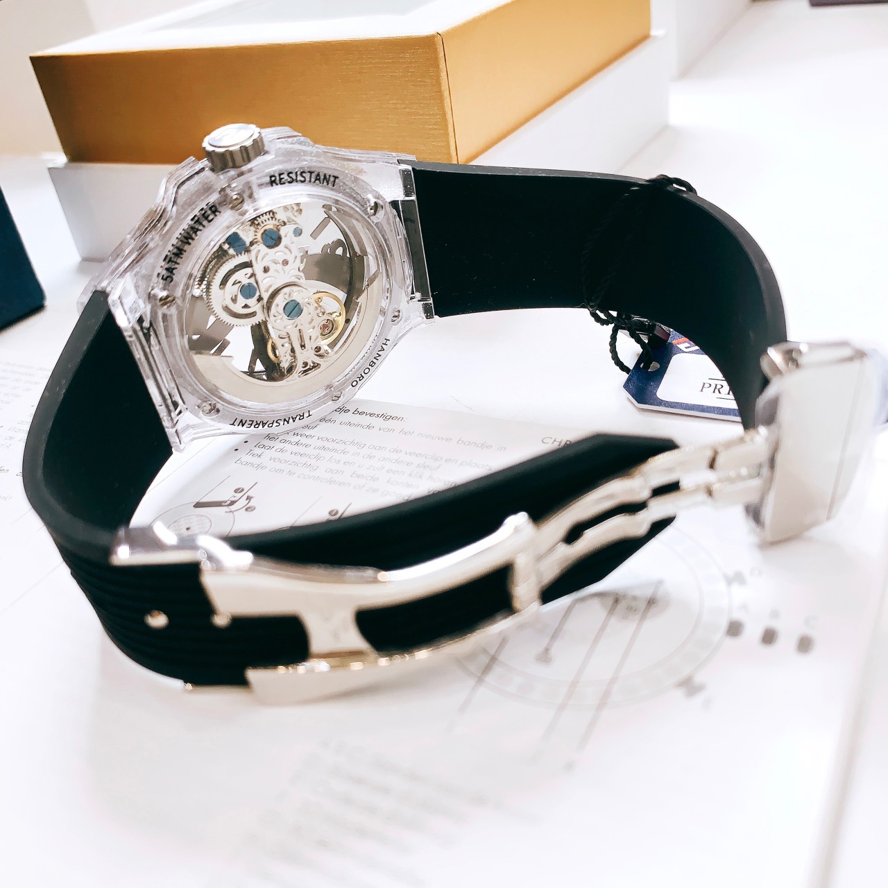 Đồng hồ Hanboro nam máy lộ cơ chính hãng vỏ dạ quang 43mm