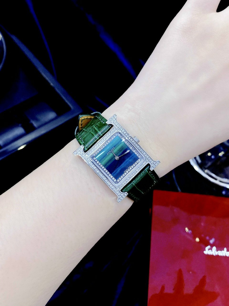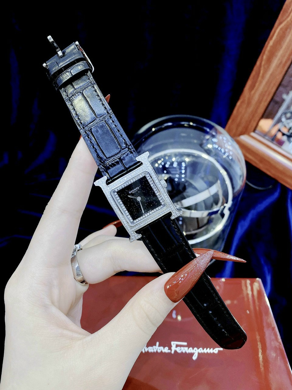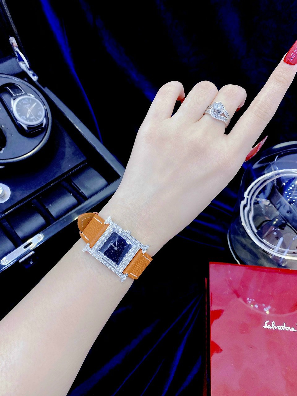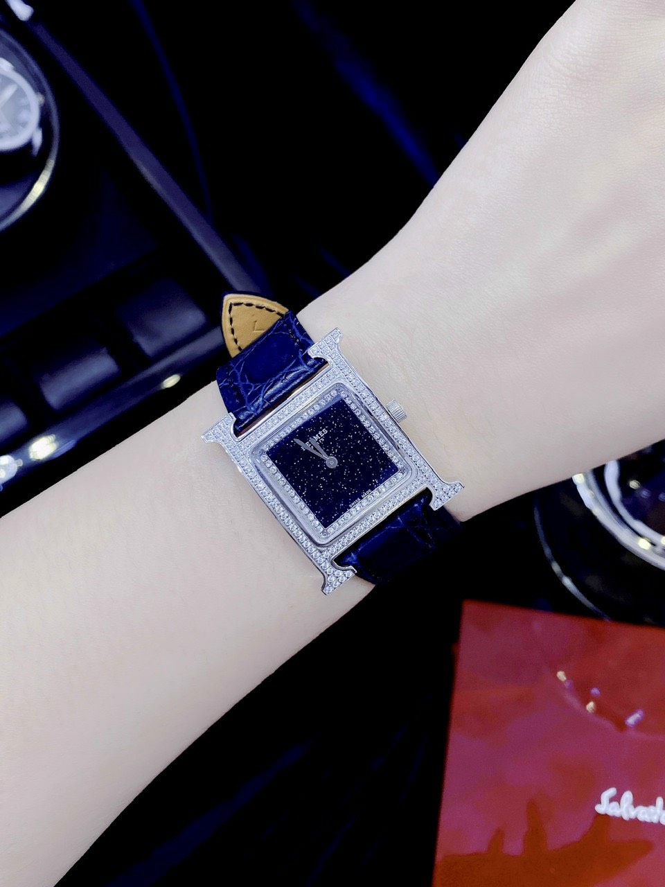 Đồng hồ Hermes nữ Like Auth mặt chữ nhật đính đá
