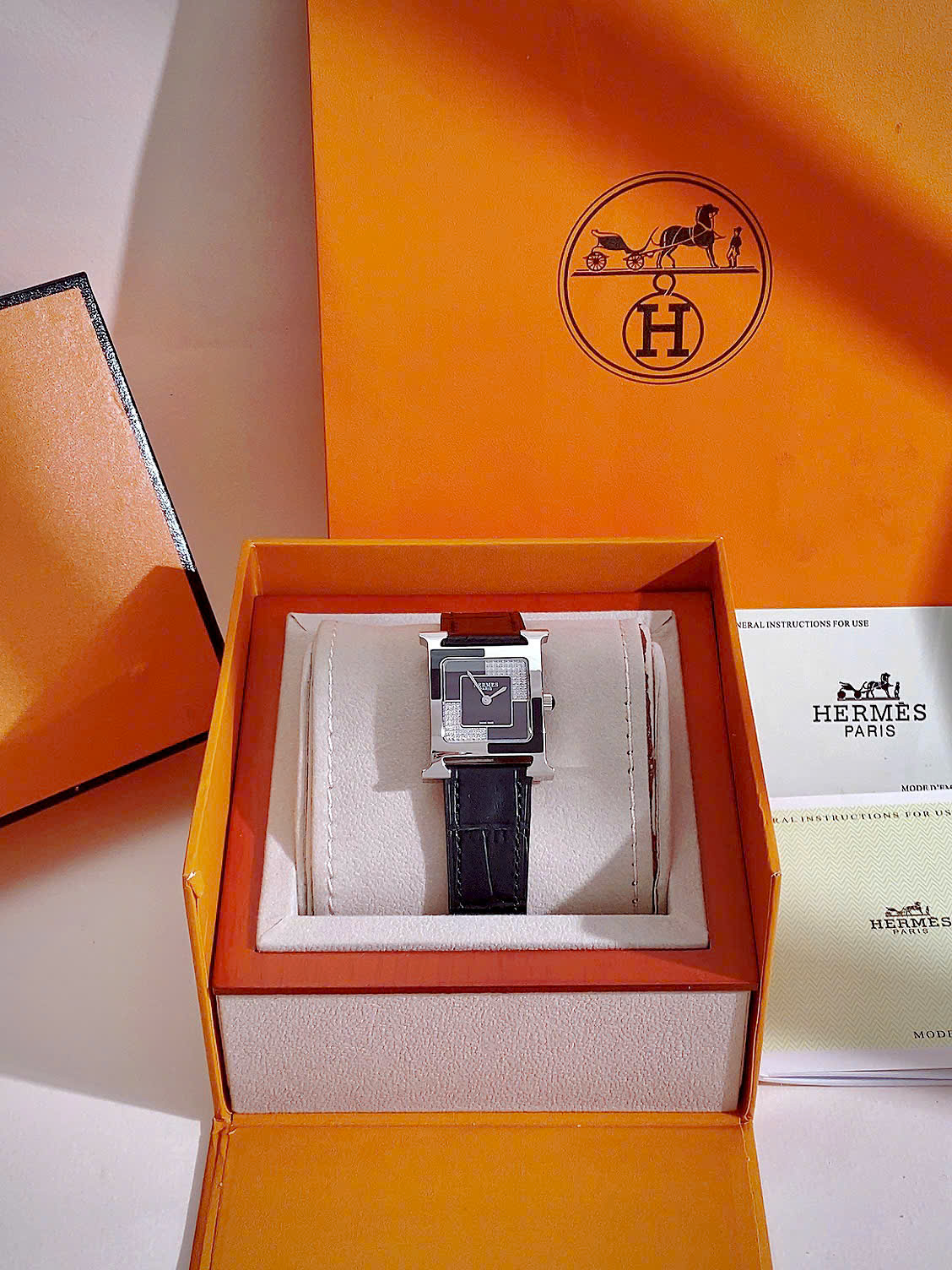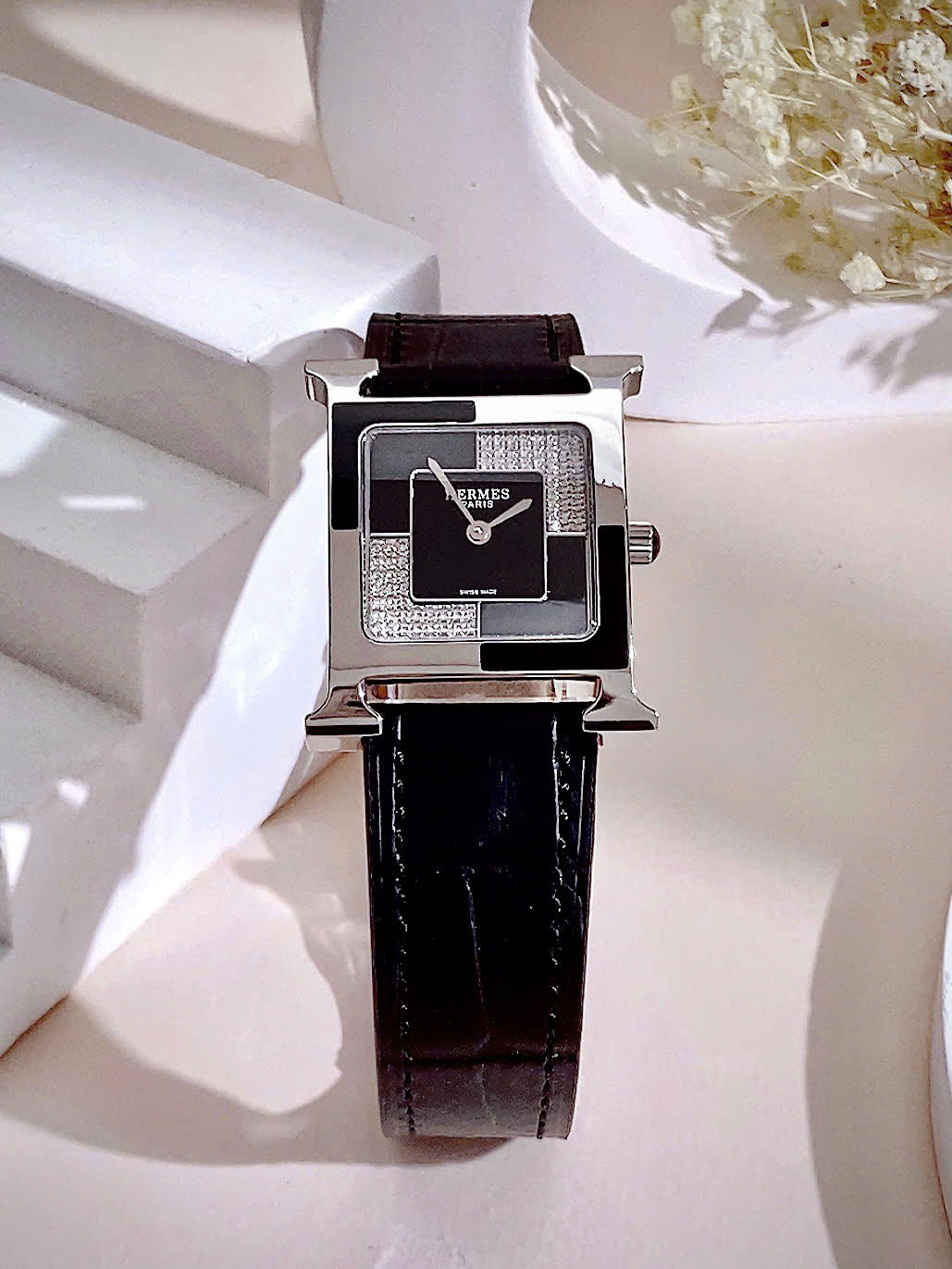 Đặt mua Đồng hồ Hermes nữ mặt vuông dây da đính đá Like Auth 26mm
