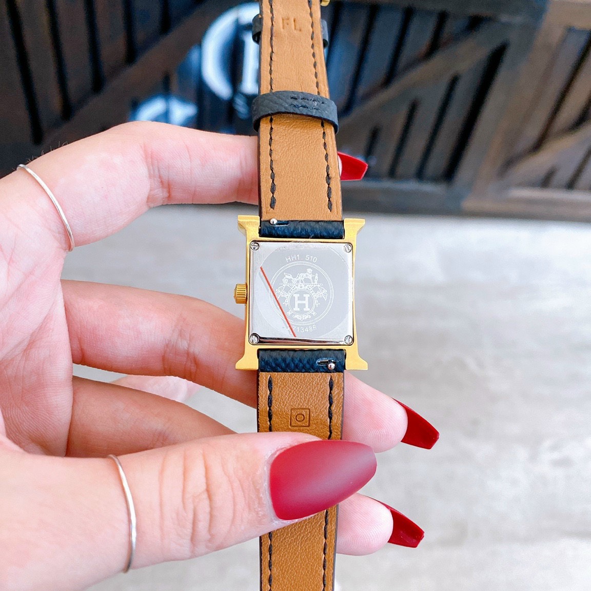 - Đồng hồ Hermes nữ mặt vuông thiết kế hình chữ H biểu tượng của thương hiệu thời trang Hermes