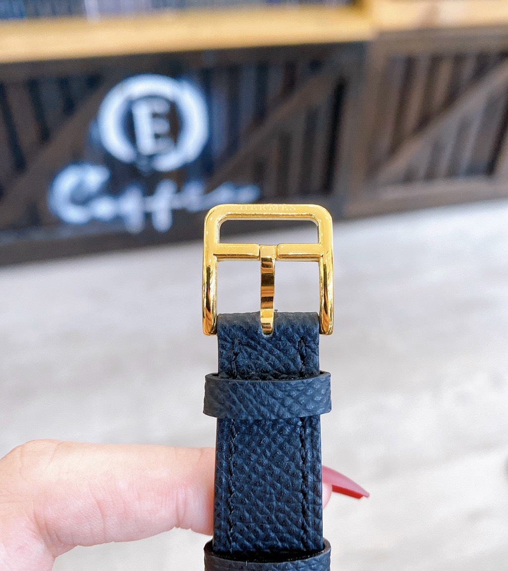 Đồng hồ Hermes nữ dây da màu đen viền vàng
