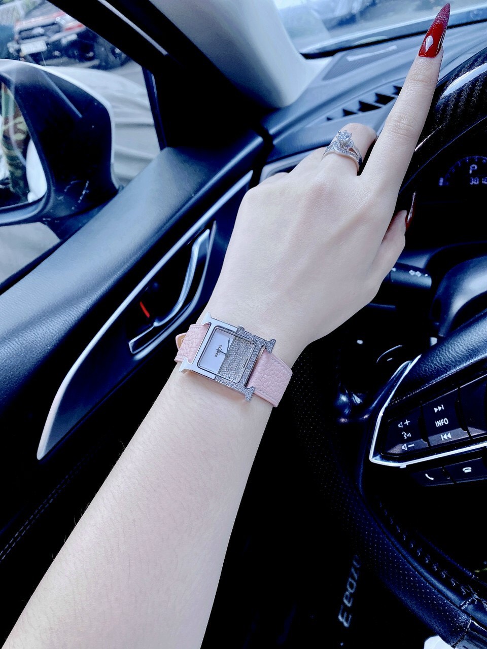 Đồng hồ Hermes siêu cấp nữ mặt vuông đính đá Like Auth 26mm