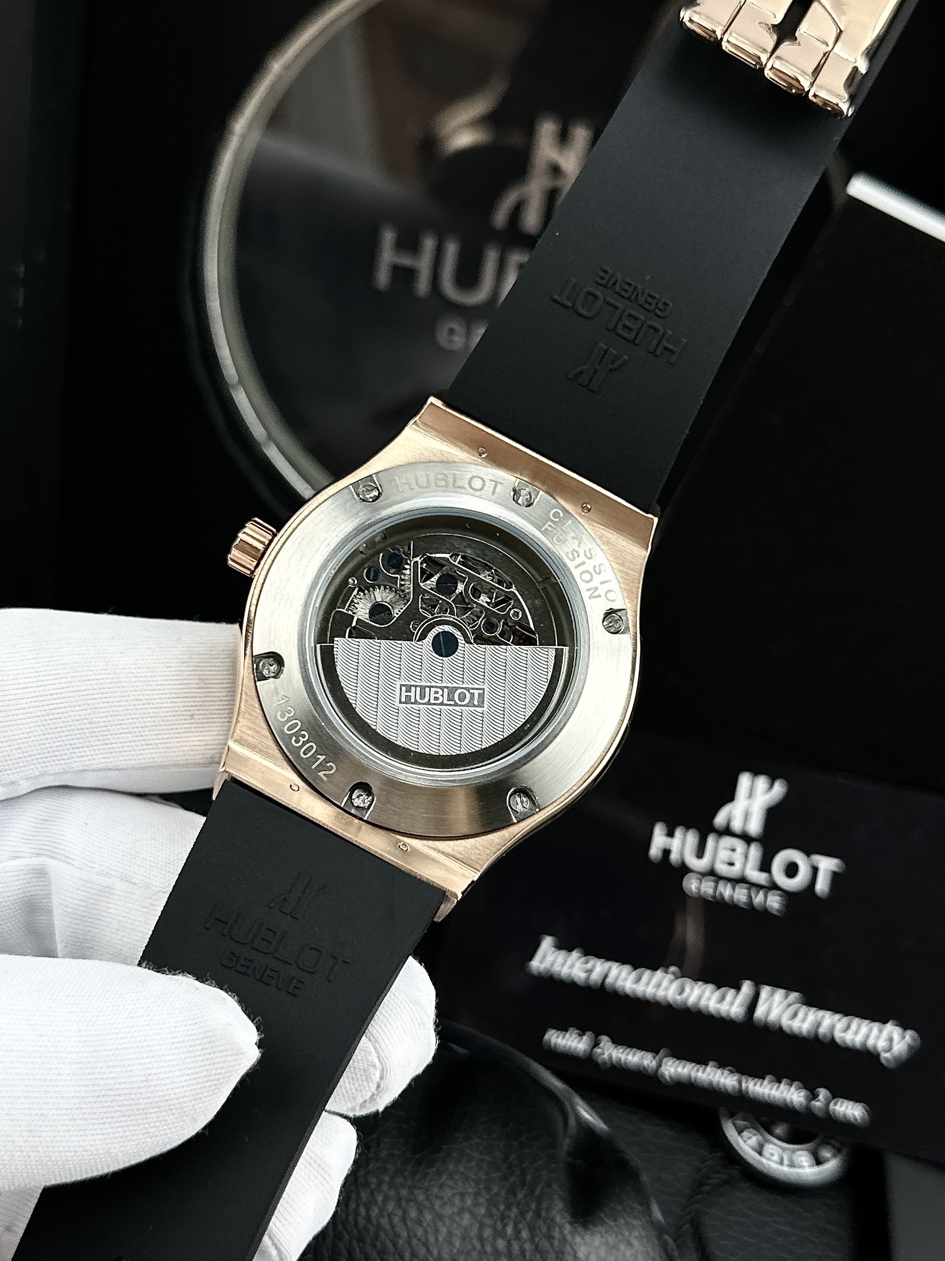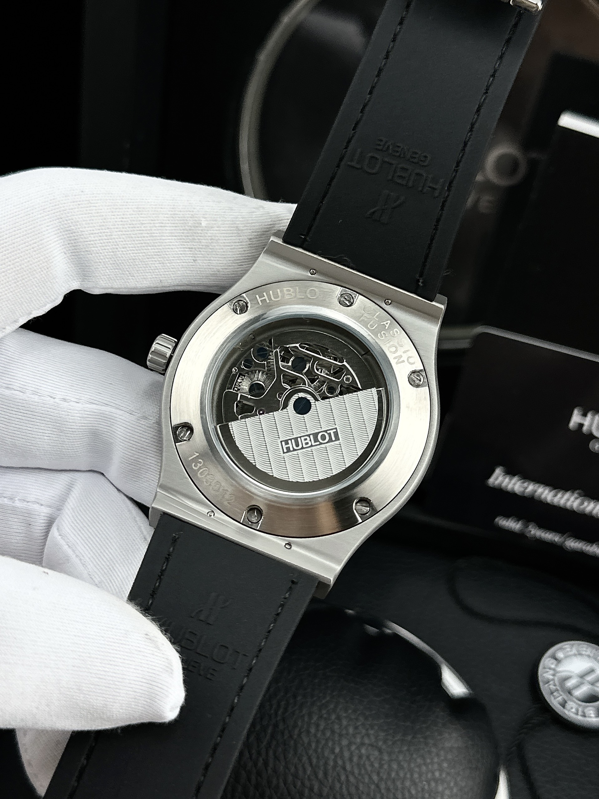 - Đáy đồng hồ Hublot Automatic cơ lộ máy Nhật Fake cao cấp bền bỉ