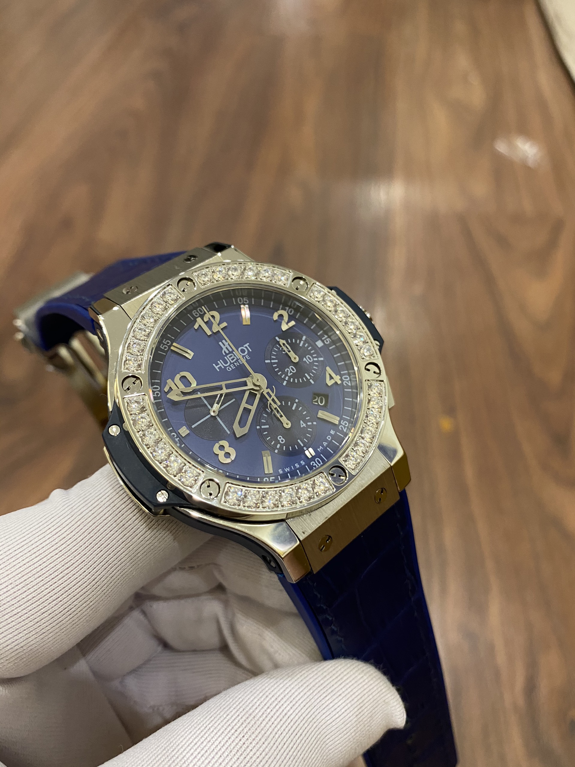Đồng Hồ Hublot Big Bang Steel Blue Diamonds HUB 4100 Siêu Cấp