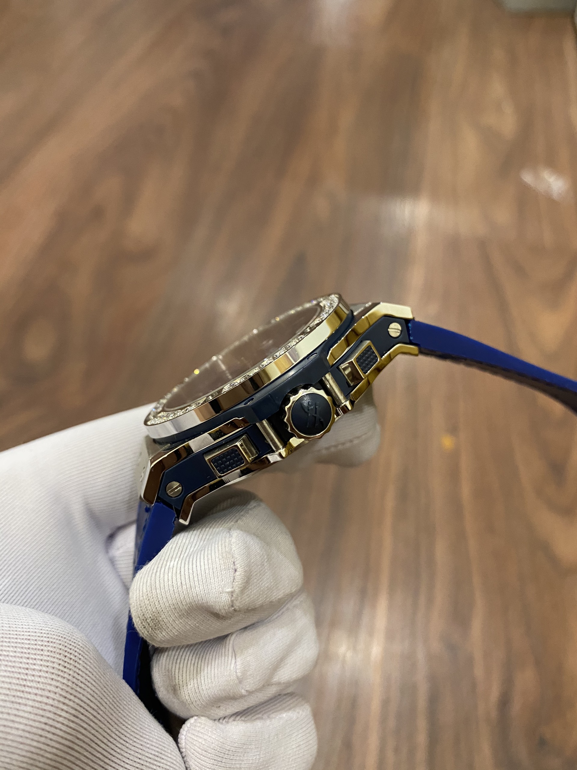 Có thể thấy đồng hồ Hublot Big Bang Diamond Siêu Cấp từ những chi tiết máy nhỏ nhất cũng hoàn thiện. Chắc chắn chiếc đồng hồ Hublot Replica 1:1 Big Bang Diamond sẽ mang đến cho bạn những trải nghiệm vô cùng thú vị. Rotor tự động được hoàn thiện với chất lượng hàng đầu, cạnh hình vòng cung có hoa văn được đánh bóng theo chiều dọc như chính hãng. Bánh xe cân bằng vàng có một bộ giảm xóc trên đầu. Trên tấm chuyển động, có một vài ốc vít bạc được cố định để làm cho chuyển động hoạt động ổn định hơn.
