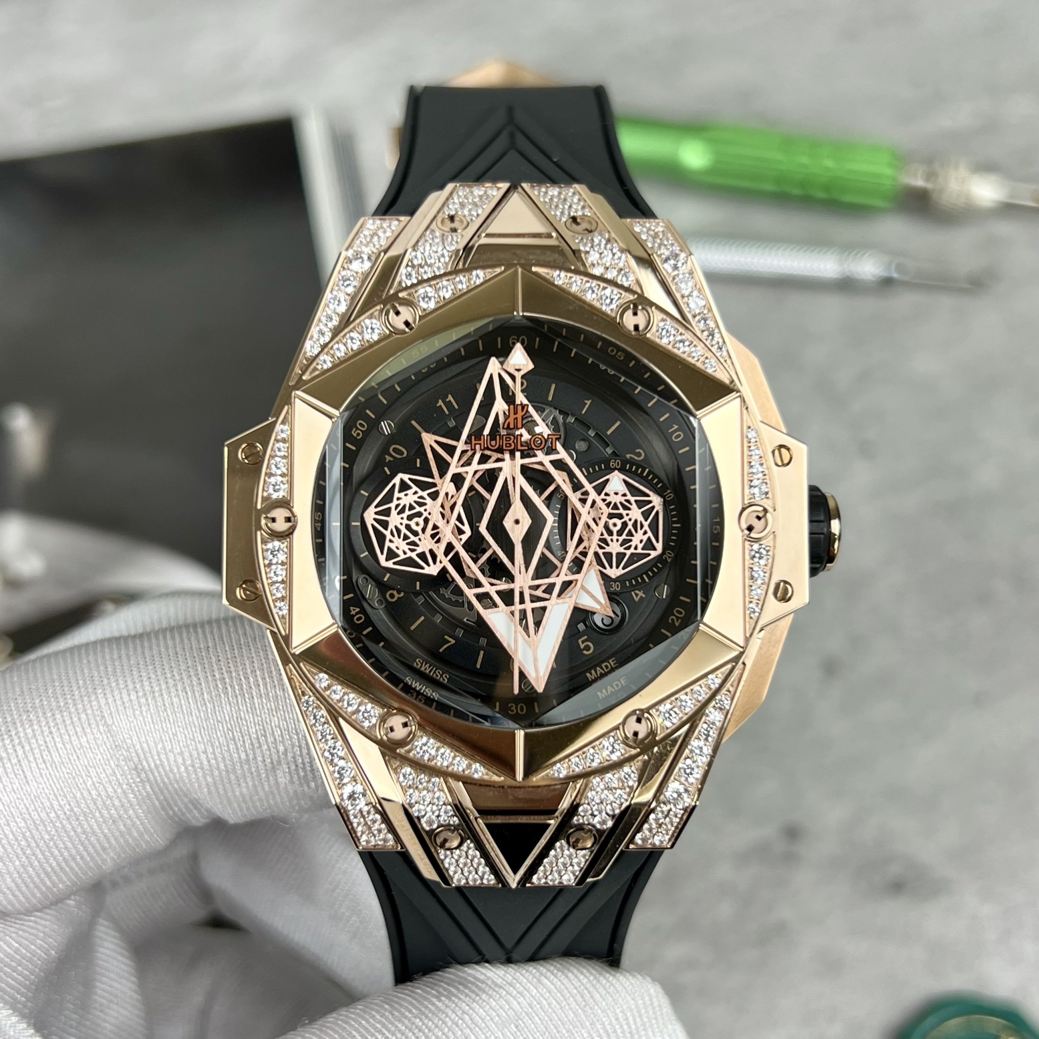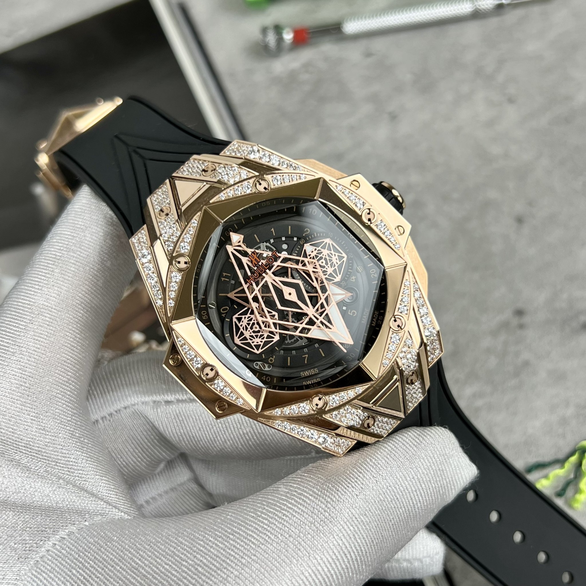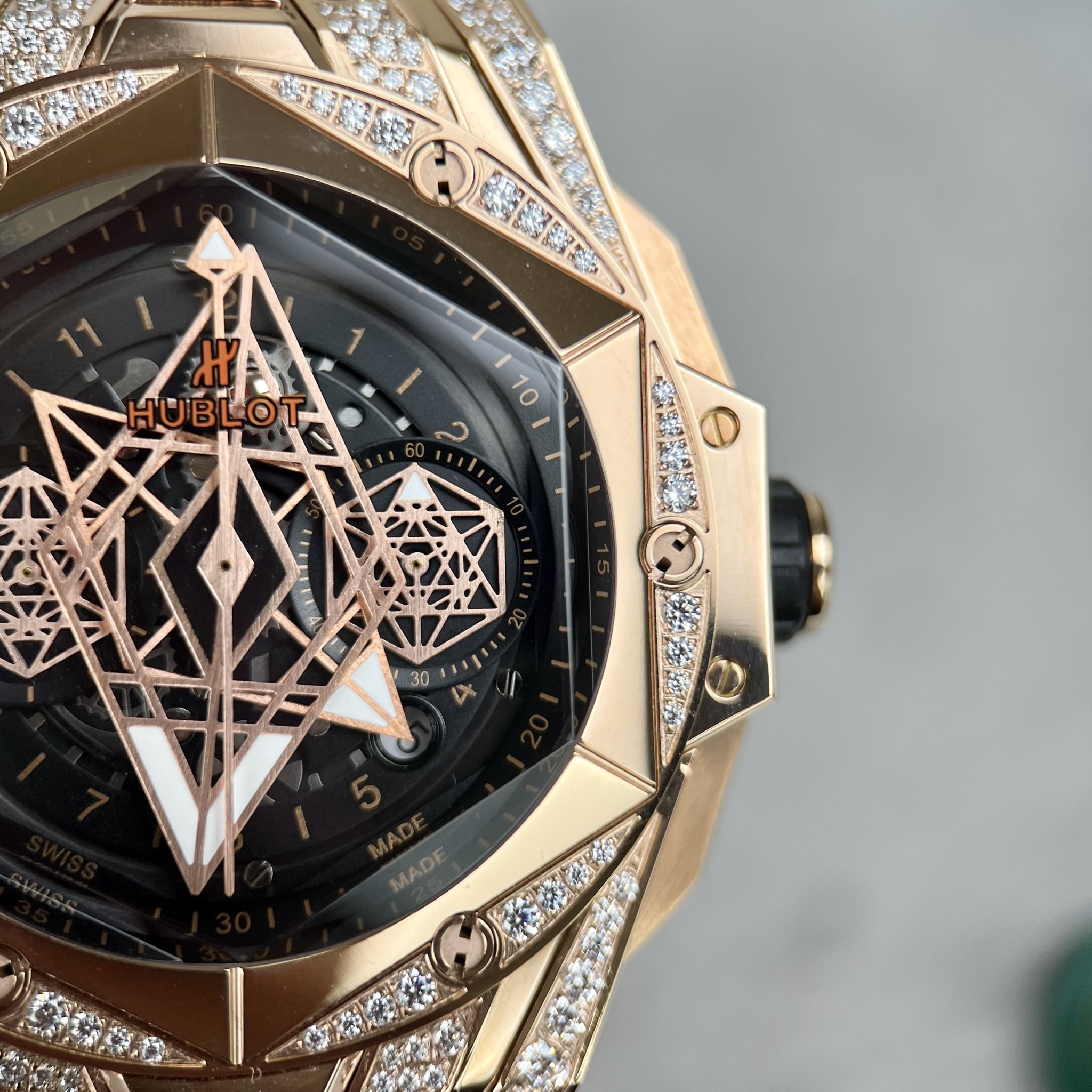 Đồng hồ Hublot rep còn nổi tiếng với các phiên bản đính đá sang trọng, thể hiện sự quý phái và đẳng cấp.