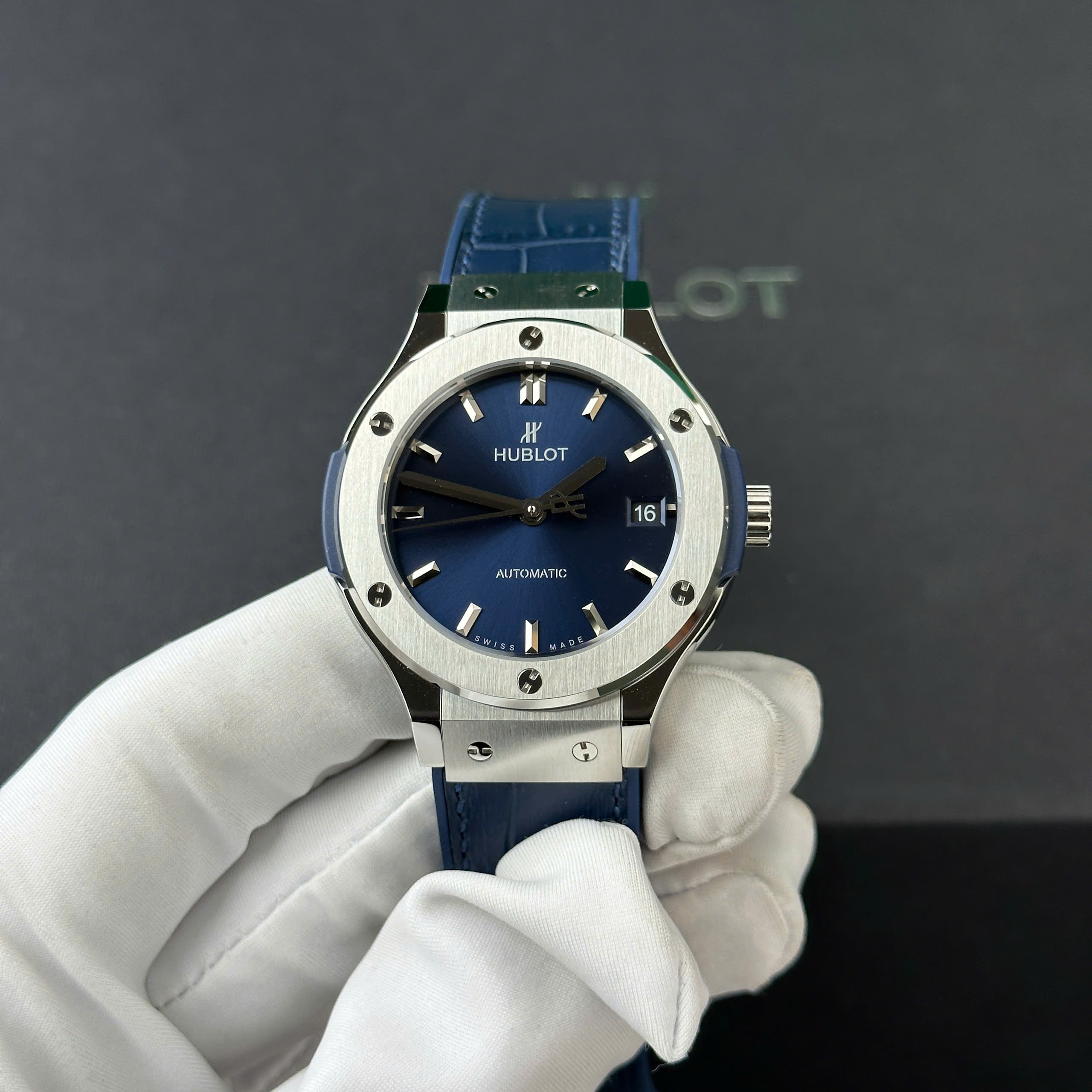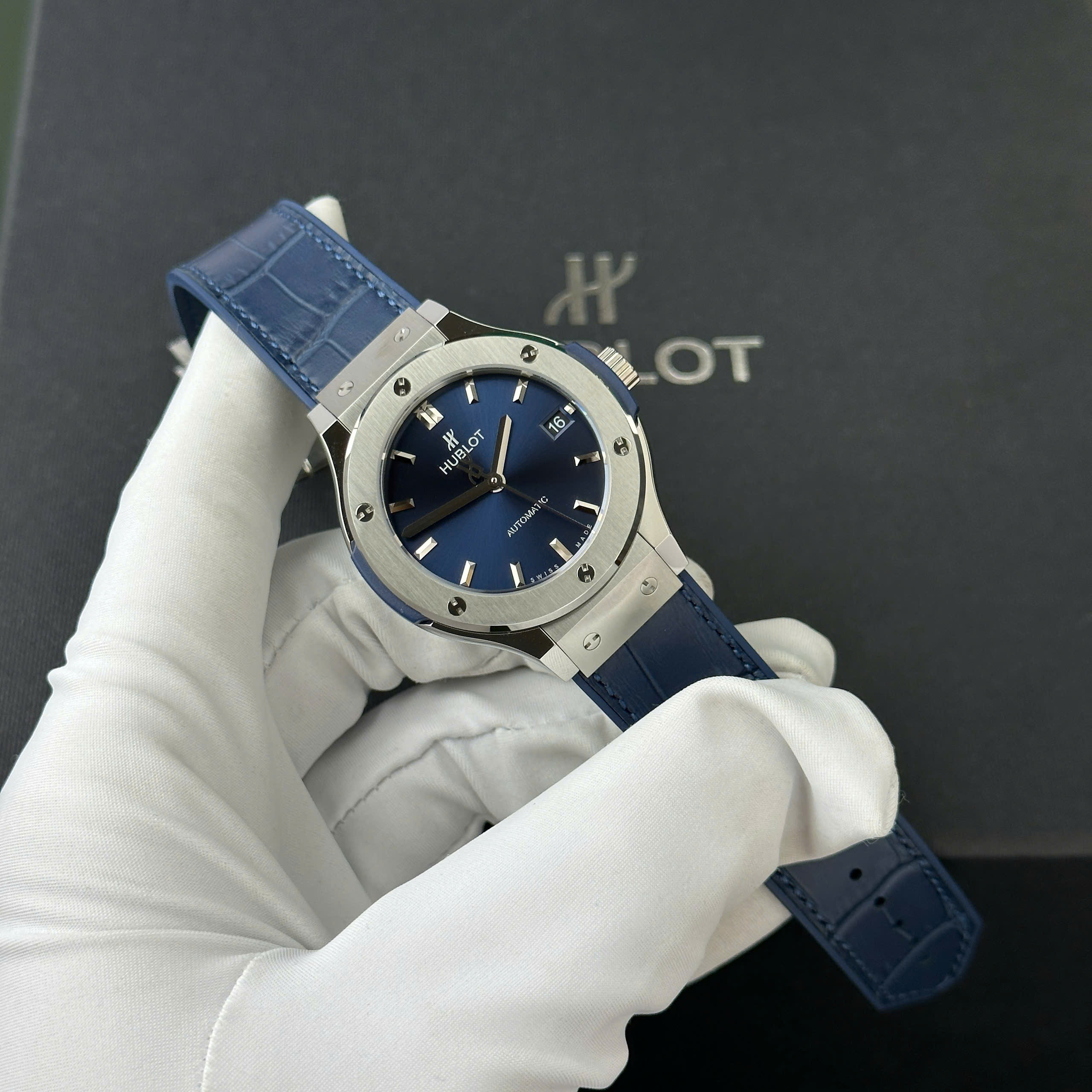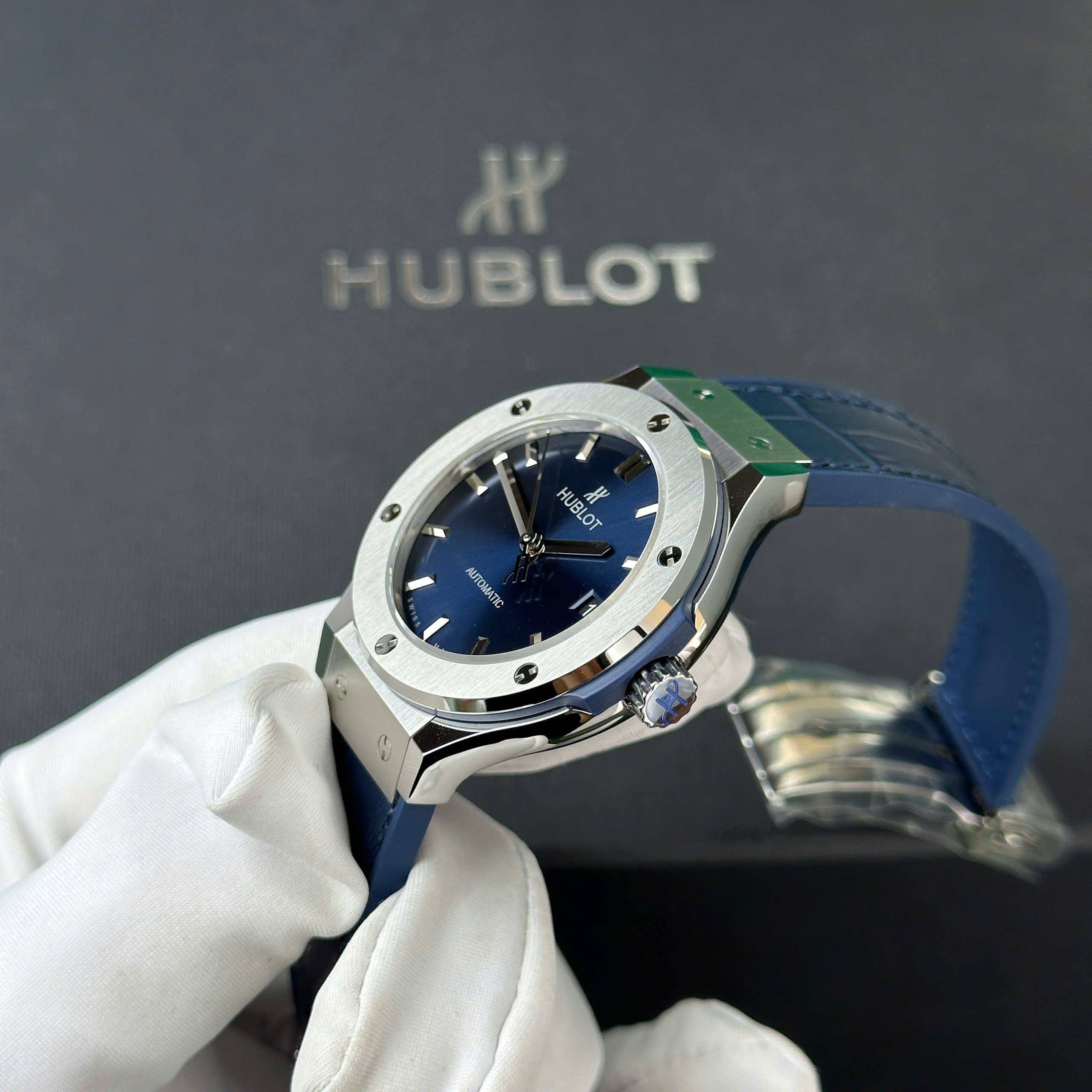 Hãy cũng DWatch tham khảo mẫu Đồng hồ Hublot Classic Fusion Titanium Rep 1 1 mặt xanh blue nhà máy JJF 38mm nhé !