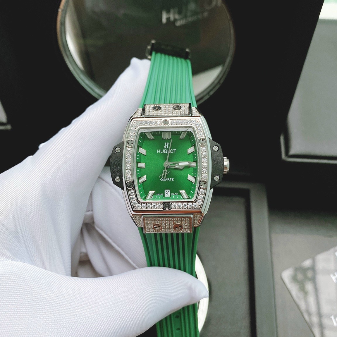 Đồng hồ Hublot dây cao su màu xanh lá cây