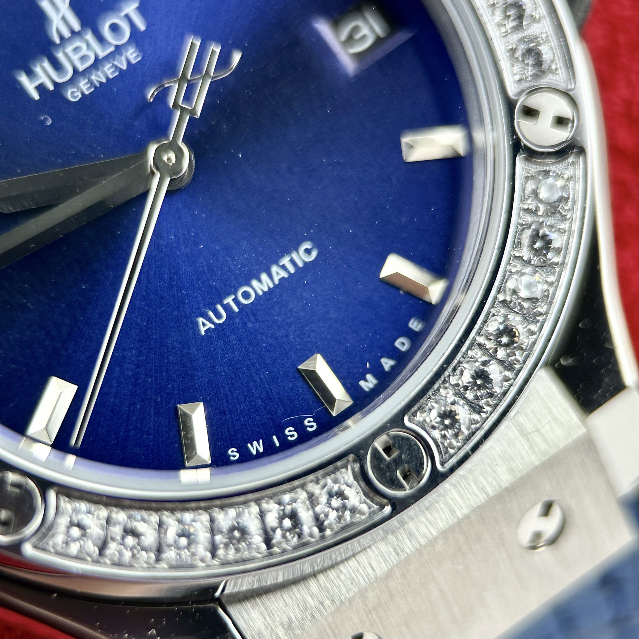 Đồng hồ Hublot đính đá máy cơ Nhật Automatic màu xanh dương