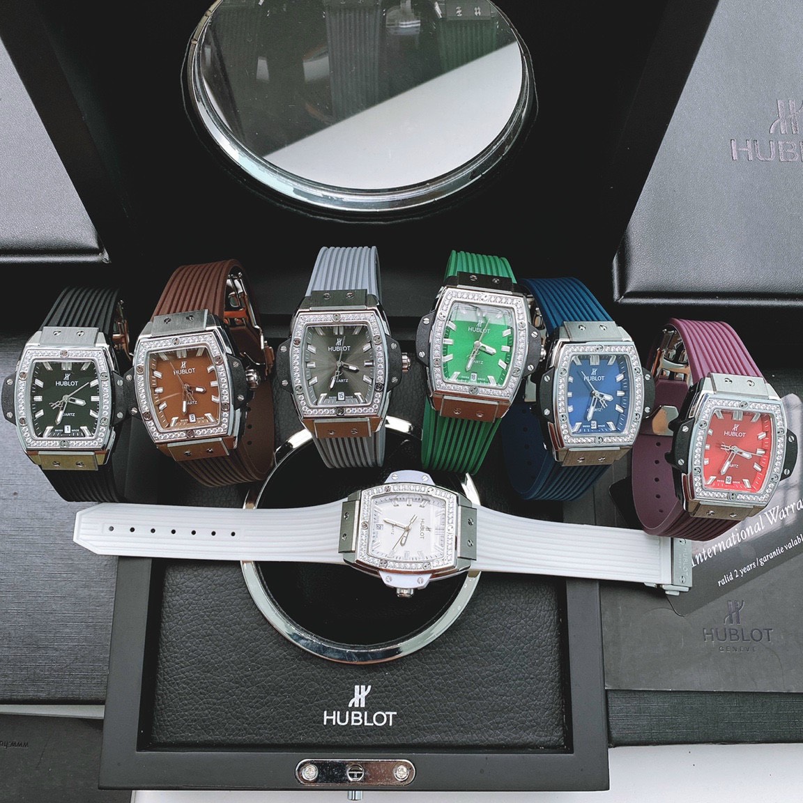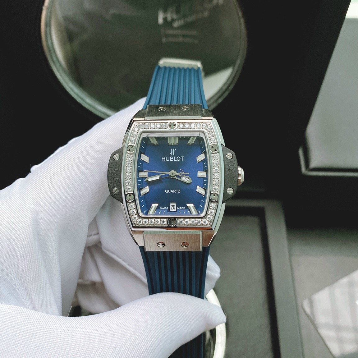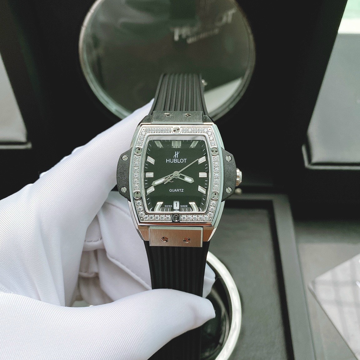 - Viền đồng hồ Hublot đính đá Swarovski sáng lấp lánh sang chảnh