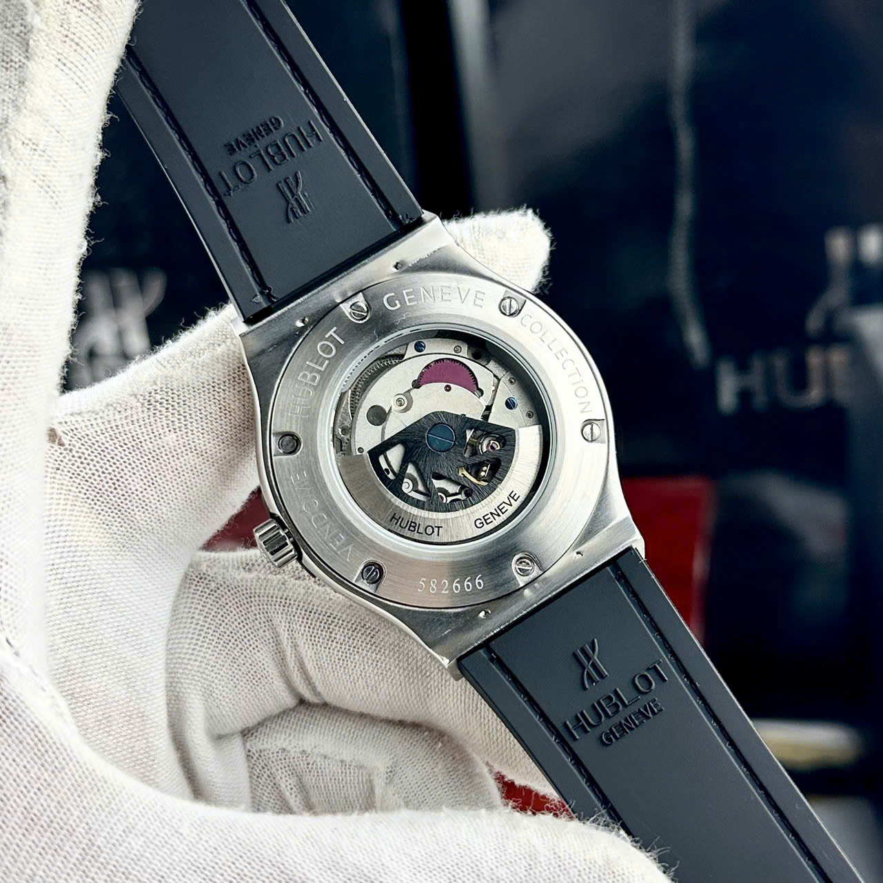 - Đáy đồng hồ Hublot nam cơ lộ máy hoạt động bền bỉ