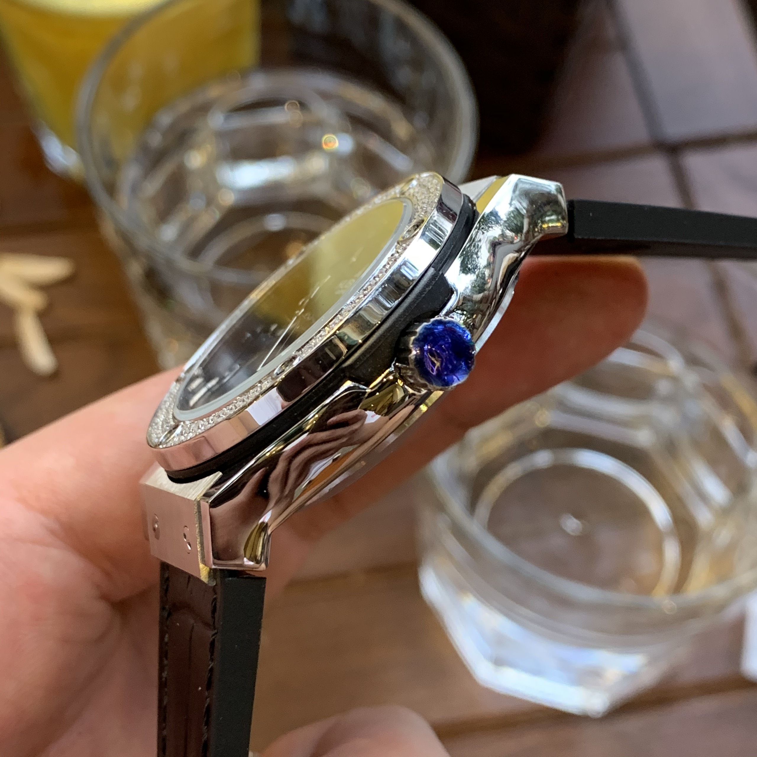 Đồng hồ Hublot nam đính đá – khẳng định kỹ năng chế tác khéo léo và tỉ mỉ bởi độ tinh khiết cũng như màu sắc của đá quý đều phải hoàn hảo tuyệt đối, không có một sự chênh lệch nào.