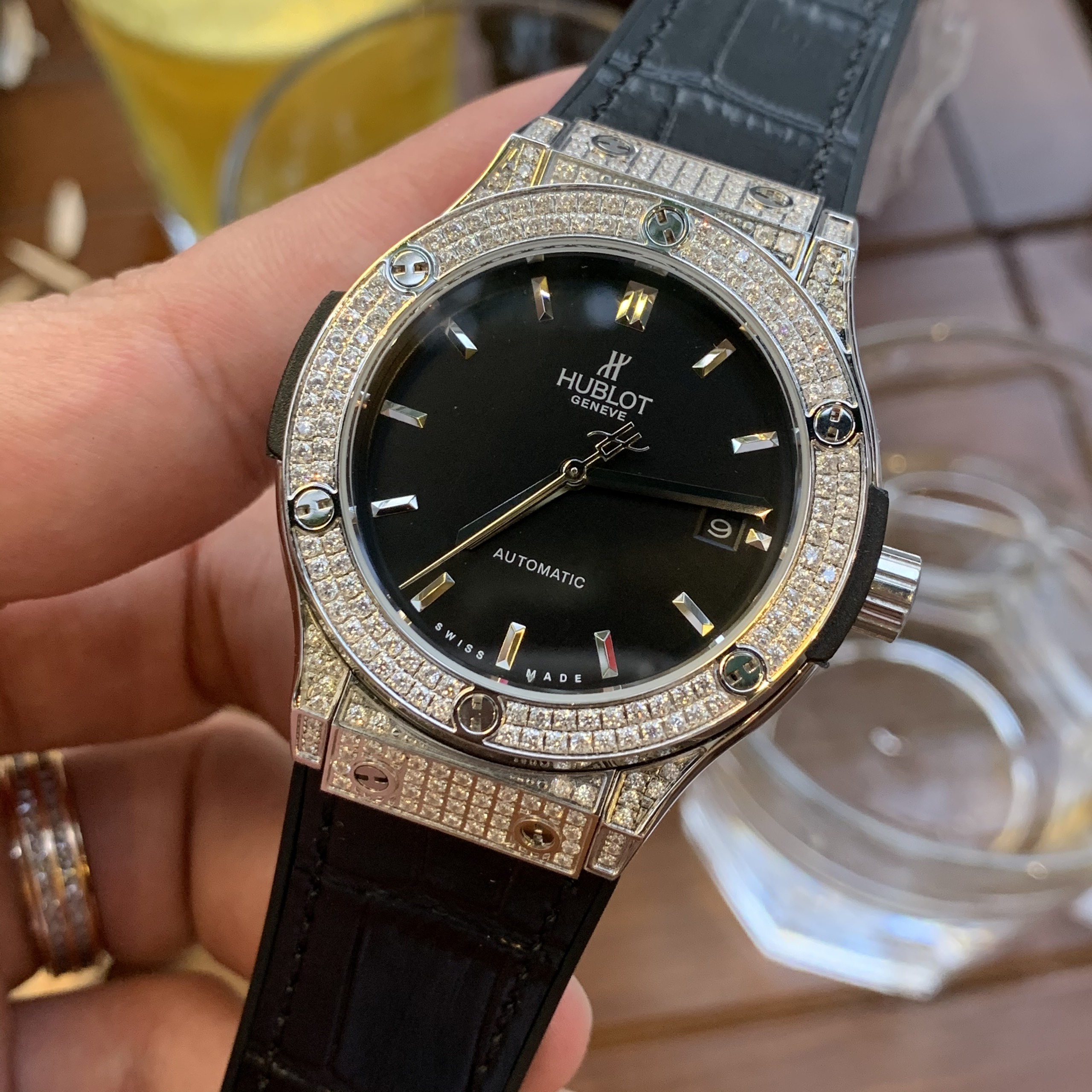 Đồng hồ Hublot nam đính đá máy cơ Hublot Classic Fusion màu đen