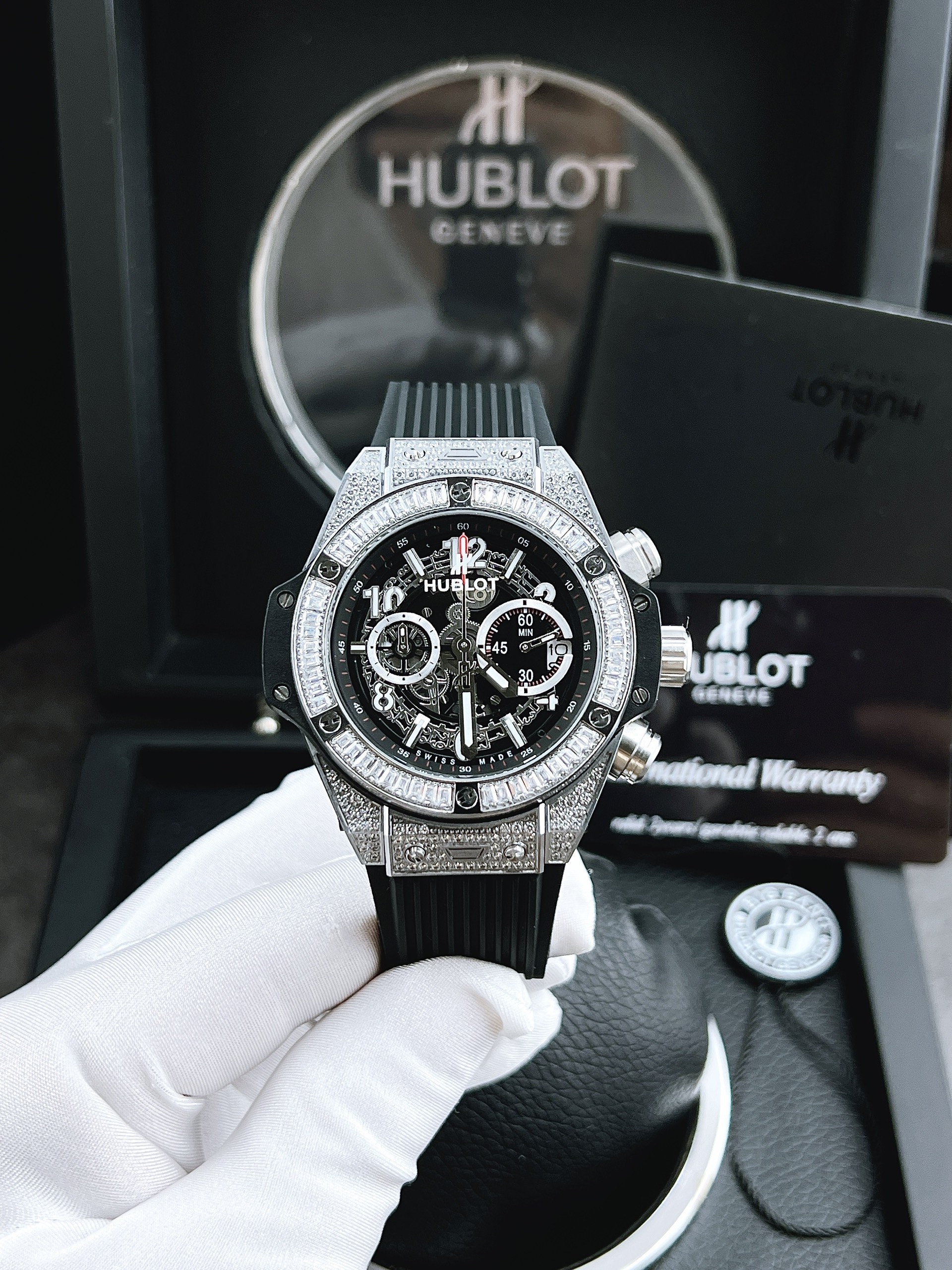 - Viền đồng hồ Hublot đính đá ống sáng đẹp nổi bật