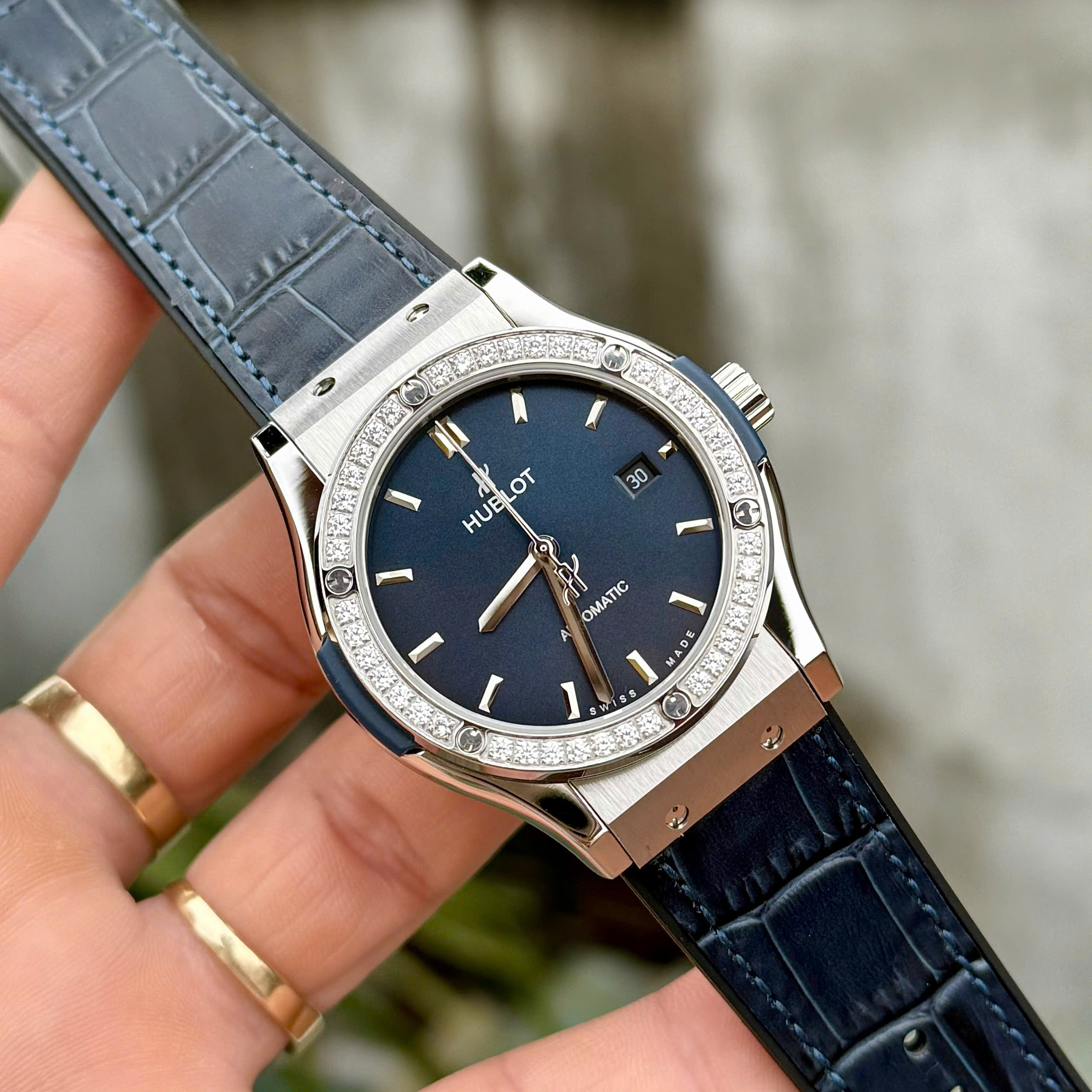 Đồng hồ Hublot nam siêu cấp máy cơ Nhật Bản ZF đính đá màu xanh – DWatch H02